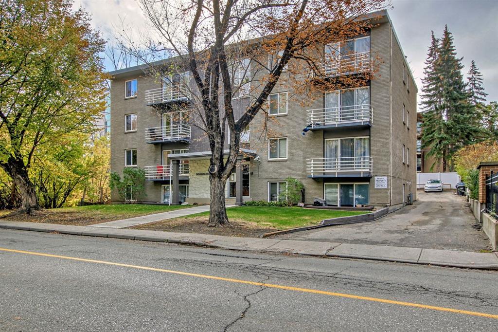 Enjoy the many benefits of inner City living in this charming top floor end unit home. Located in a well managed and maintained concrete building, this spacious one bedroom condo is bright and airy. Although the building was undated in about 2000, this unit still has the original parquet hardwood flooring which flows throughout. The open concept Living, Dining and kitchen areas open to the sunny South facing balcony. The compact yet functional kitchen has a breakfast bar and big West facing window and allows plenty of space for a big dining room table. The bedroom is large enough for a King sized bed and is across from a 4 piece bathroom. No need to trek to a basement as there is in-suite laundry. An assigned parking spot is a plus, however you can leave your car at home and walk to all of the many shops and restaurants in the trendy Mission neighbourhood. Stroll or bike along the Elbow River with its many pathways and parks. This is an ideal starter home/rental unit with professional management and extremely reasonable condo fees.