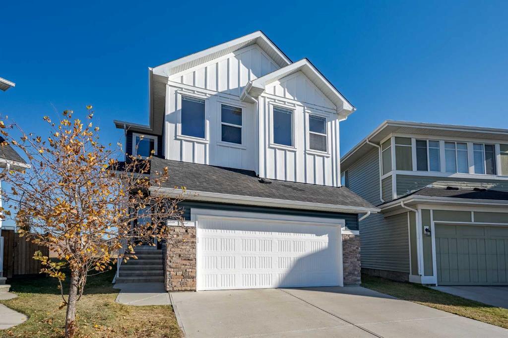 Come and CHECK OUT this beautifully finished home in the community of Redstone! As soon as you walk through the door you are welcomed by the foyer. Continuing to walk, you will see a good-sized office with French doors for privacy and an open-spaced floorplan kitchen, living and dining room making it the perfect place to entertain. Kitchen has ample cabinets space, granite counters and white appliance package. Island with breakfast bar, sink, dishwasher and storage space. Next to the kitchen you will find a spacious walk thru pantry and mudroom with half bath. Moving upstairs you have an enormous master bedroom with a big walk-in closet and ensuite bath. This floor wouldn’t be complete without a laundry room and huge open space that can be used as another living room. To complete this floor there is a full bath and three additional bedrooms. The basement is unfinished but big and full of potential. This house has a great location near in the NE part of Calgary with many shops, schools, and quick access to the airport. What are you waiting for? Come view this property today! Roof is 1 year old, INTERIOR freshly painted.