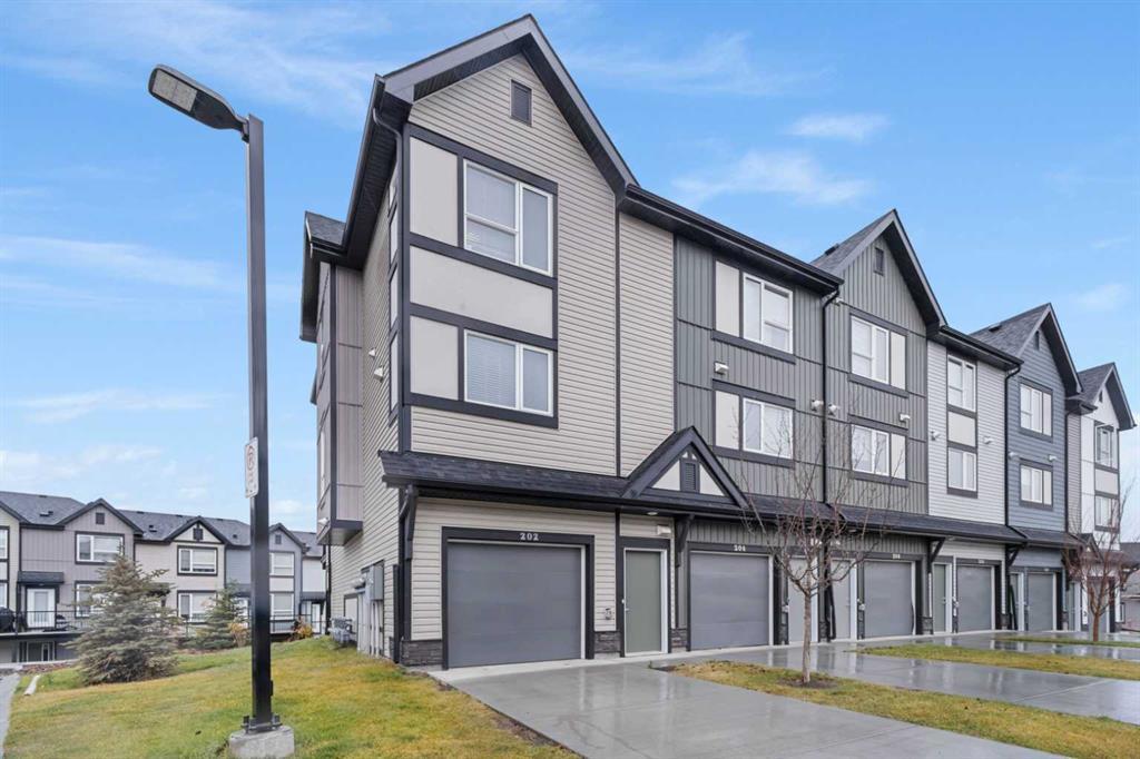 Welcome to #202, 16 Evanscrest Park NW! This beautiful 3 bedroom + 2.5 bathroom END UNIT townhouse has parking for 3 vehicles! On the main floor, you will enjoy the open and airy floor plan with 9ft ceilings. This level includes the spacious kitchen with a good sized pantry, stainless steel appliances, flat slab MDF cabinets, black hardware throughout, opening to the bright dining and living room with extra side windows . On the 3rd floor, you will notice the upgraded LVP flooring, 3 good sized bedrooms, 2 full bathrooms and upstairs laundry! Move into this fantastically located community of Evanston minutes to Stoney Trail and close to many shops and restaurants! Call your favourite agent to book a showing today!