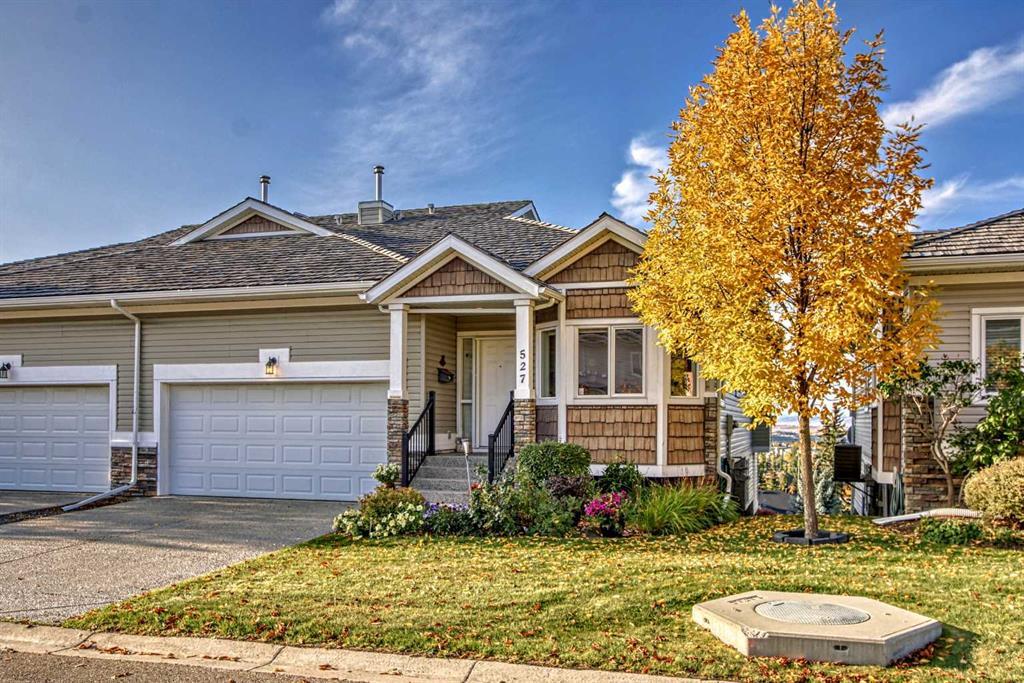 Live without compromise in this Air-Conditioned move-in ready WALKOUT BUNGALOW VILLA, boasting an insulated double ATTACHED GARAGE, stunning MOUNTAIN VIEWS and 2100 sqft of finished living space! With impressive curb appeal this PREVIOUS SHOWHOME boasts tastefully maintained flower beds and lawns that allow for low-stress ownership without worrying about shoveling snow or endless yard work, just lock and go! Upon entry, you will notice a larger front vestibule with a cozy & bright front sitting area. Then you will move into the OPEN CONCEPT main floor boasting ENGINEERED HARDWOOD FLOORS throughout and a large kitchen with ample cabinetry, STONE COUNTERTOPS, SS APPLIANCES and a New Dishwasher in 2017. The living/dining area is perfect for entertaining friends and family with its 12-foot VAULTED CEILINGS and cozy gas FIREPLACE. The entertaining space spills out to the SUNNY SW-facing DECK with its impressive and rare MOUNTAIN VIEWS! The oversized primary bedroom is complete with both a Private 3-piece bath and a LARGE WALK-IN CLOSET. The main floor is completed with a powder room and handy main floor laundry. Downstairs the WALKOUT BASEMENT is well-lit with ample windows, IN-FLOOR HEATING, 9-foot ceilings, and more of those incredible mountain views! The large family room is perfect in its current configuration and ideal for entertaining. There is another bedroom for guests, a 4-piece bath and loads of storage in the dedicated storage room (this could easily be converted to another bedroom if one wished). The PATIO WALKOUT is bathed in those SUNNY SW VIEWS and is a great place for your friends and family to enjoy the manicured lawns and stunning mountain views. Book your private showing today!