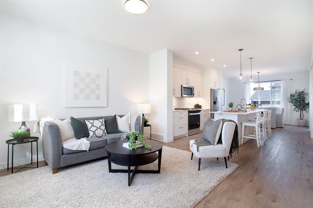 Discover this immaculate TRUMAN-built residence nestled within the highly coveted Cornerstone community, offering convenient proximity to Stoney Trail, nearby playgrounds, scenic pathways, and a variety of shopping options. As you step through the entrance, you'll be greeted by a thoughtfully designed 3-bedroom open concept layout. The heart of this home is the stunning chef's kitchen, boasting full-height cabinetry with soft-close doors and drawers, a stylish eating bar complemented by quartz countertops, and a complete stainless steel appliance package, seamlessly flowing into the dining area and great room. The main floor showcases lofty 9-foot ceilings, luxurious vinyl plank flooring, a convenient 2-piece bathroom, a welcoming entrance area, and a practical mudroom. Ascend to the upper level to find the primary suite, boasting a 4-piece ensuite bathroom and a spacious walk-in closet. The upper floor also offers two additional bedrooms, a full bathroom, and a convenient laundry area. The unfinished basement eagerly awaits your personal touch, providing endless possibilities to tailor it to your preferences. This TRUMAN-built home has a bright and airy ambiance, making it move-in ready and waiting for you to call it your own.