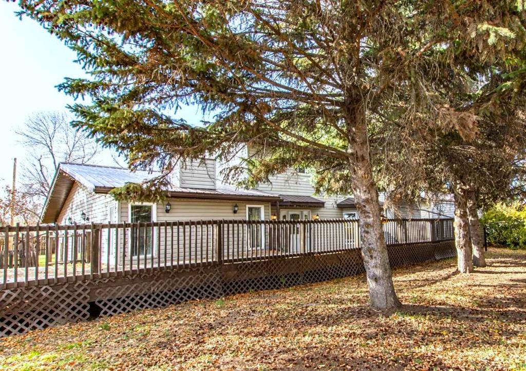 This home is sitting in a pretty, parklike setting in the quiet hamlet of Red Willow. This is a huge property on 3 lots measuring a total of 150’x 125’. The property sits on the edge of town with farmland directly to the east and the ball diamond/community hall nearby. This property is just far enough from Stettler for you to enjoy a quick 15 minute commute. The lot is beautiful with mature trees around the perimeter of a fenced backyard, offering privacy and shade. There is an open grass area in the back and plenty of space along the side to park an RV. Inside, the front entry is bright with sunlight coming in the front door and sidelights. There is a living room with bay window with a view of a huge east facing deck. The kitchen sits next to the dining room. Further down there is a very spacious laundry room with cabinets, counterspace, and shelving. Through the French doors is the family room - a great space to entertain or to relax at the end of the day. Here, there is a sunken area, a 3 pc bathroom, patio doors to the side yard, and a door to the backyard. Upstairs, there is a large primary bedroom with a spacious walk in closet and a door to an upper deck. There are 2 more bedrooms and a 4 pc bathroom. This property also has a 24’ x 32’ double garage.