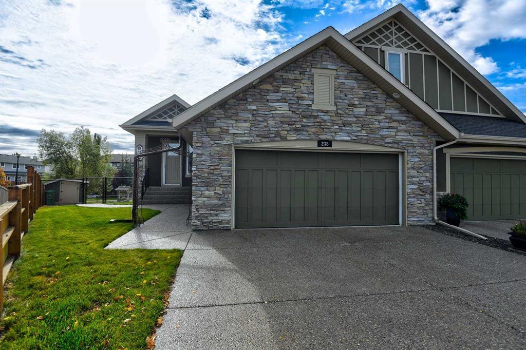 Welcome to this beautiful fully developed bungalow WITH a walk out basement in the amazing quiet location of Cranston. This home is situated on one of the largest pie lots in the area, siding and backing onto walking paths and green space. This open plan home has over 3000 Sq feet of developed living space and amazing 9 foot ceilings. The main floor consists of a bright office/den, a separate formal dining room, huge kitchen with granite countertops, another dining area, and living room with a cozy fireplace and vaulted ceilings. The Primary bedroom is also on the main floor with a lovely 6 piece ensuite bathroom which leads you to the walk in closet! There is main floor laundry and another 2 piece bathroom to complete this level. The patio doors off the kitchen lead to a nice sized balcony that you can see the amazing mountains from! The walk up level has a separate entrance that leads to a covered concrete patio and leads up to another patio for all your entertaining needs. This fully developed space offers a HUGE kitchen/bar area with a large island, full sized fridge, dishwasher, and sink. This space opens up to the enormous family/rec room which is defiantly big enough for a pool table and TV/Media area. The lower level offer 2 more king sized rooms both with walk in closets. The is another 4 piece bathroom that completes this space. The basement has in floor heat so it is always cozy and warm and air conditioning to keep you cool in the summer. With one of the largest lots in the community you will be happy to have the underground sprinkler system and a beautiful shed that matches the home! Let us not forget the entire property has exposed aggregate sidewalks and driveway. The garage is oversized and heated for those winter months. This location is hard to beat as it is in a quiet cul de sac and is only steps away from the ridge over looking the river and mountains. Look no further with shopping, pubs, school, and public transit within minutes you have everything you need. Bungalow homes in this particular area are very sought after and do not come for sale often. Schedule your showing today!