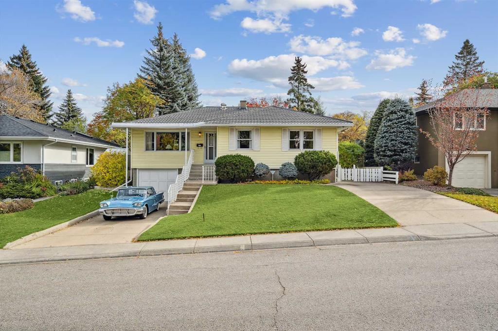 First Time offered for Sale. This Extremely well cared for Mid Century Bungalow sits on an OVERSIZED 60 X 125 Foot Lot. A great opportunity to Renovate or Build new with a 2 storey and possible city views. The welcoming front Living Room is anchored by a decorative Art Deco Fireplace. The Dining area is spacious for those family gatherings and is adjacent to the Kitchen. Down the hall are 2 Large bedrooms, full bath and there's a third bedroom located at the entrance which could be an ideal office/den. There's hardwood flooring under the carpets The Lower level will transport you to a time of the classic 50's with the checkered flooring, ornamental fireplace, and huge mural. Now imagine listening to the sounds of Frank coming from the stereo while entertaining your guests. The 4th bedroom along with a full bath and laundry complete the lower level. Access the garage from here into the single garage. The Rear Yard is huge but private. Only a few blocks to the Tennis Courts, Off Leash Dog Park, LRT, Schools, etc.