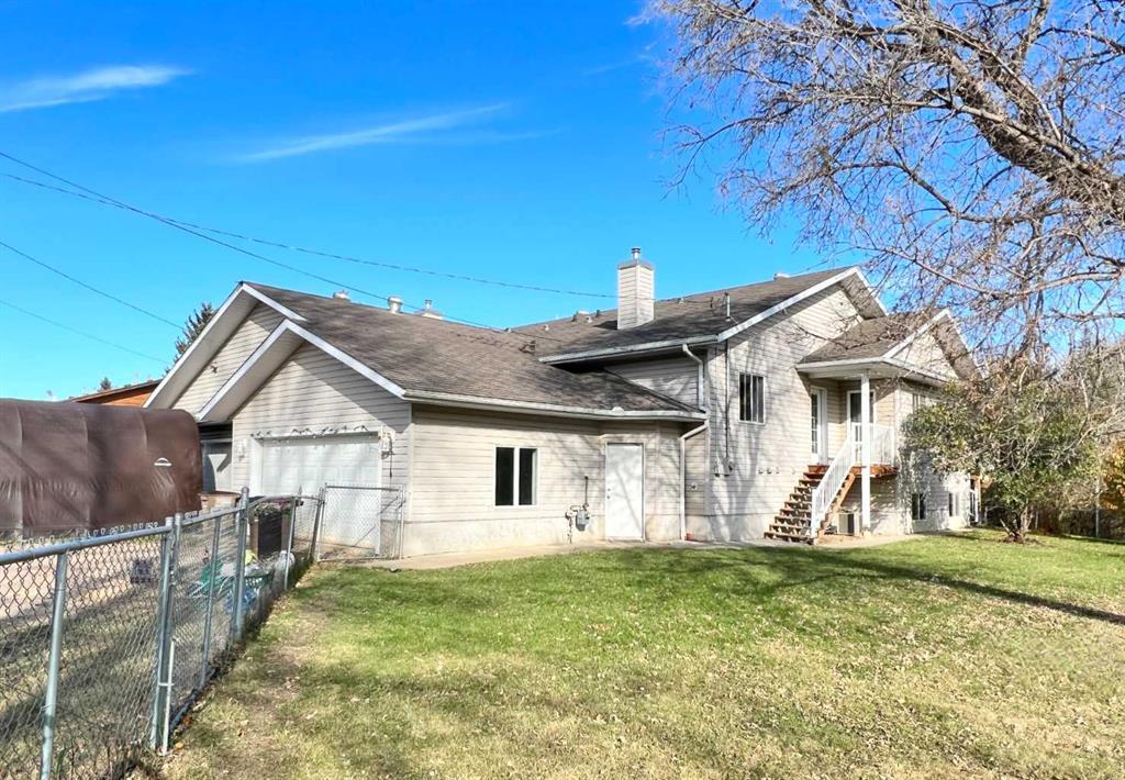 Enjoy a country setting in town limits. This affordable family home is within walking distance to all amenities. Corner lot borders the Muskeg Creek with trail system, and only a short walk to LTIS Intermediate School. Half duplex built in 2007 with over 2000 sq ft of finished living space, open design with vaulted ceiling. 2 bedrooms and 2 bathrooms on the main level. Primary bedroom has a spacious ensuite with shower and walk-in closet, with a view of the creek. You could leave you window open and let the sound of the water put you to sleep. Finished basement has a family room, 2 more bedrooms, bathroom and large storage room. Plenty of extra storage with additional closets, cubbies and pantry. Be sure to step out on the deck to listen to the creek below. Double attached garage is finished. Yard is fully fenced.