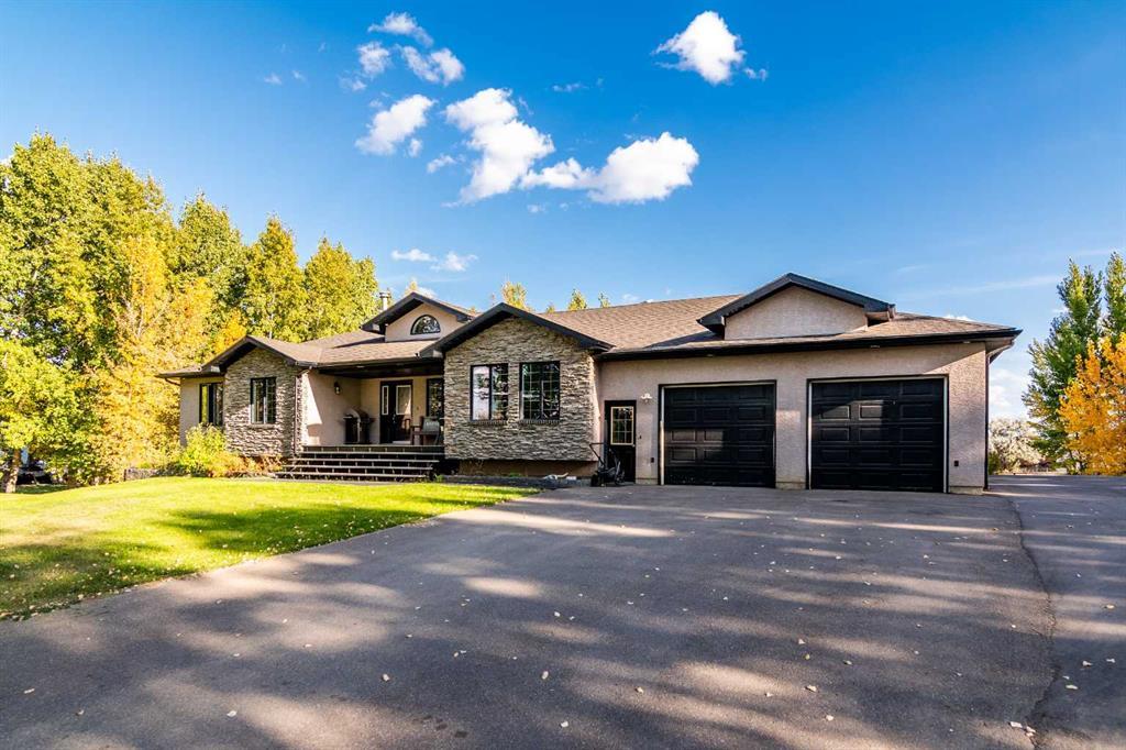 Located minutes from city limits and nestled in a picturesque landscape, this residence exudes an elegant charm and boasts a myriad of features—a paved driveway, offering ample parking space, guides you to the home's entrance, where vaulted ceilings welcome you into the living room, spacious main entry, and den area. For the outdoor enthusiasts, the backyard is a haven of tranquility, featuring a firepit and pond that adds a touch of natural beauty. Step outside onto an expansive deck that provides multiple access points for seamless indoor-outdoor living. A thoughtfully designed yard, SMRID water feeds an underground irrigation system on timer, ensuring your landscaping remains lush, vibrant, and well-maintained throughout the growing season. This property seamlessly combines the serenity of nature with the comforts of modern living. The master ensuite is equipped with a two-person rainfall shower, and walk-in closet. With three bedrooms and three bathrooms on the main floor, and two large bedrooms accompanied by a four-piece bathroom downstairs, this home caters to both family-living and entertaining. Additional amenities include a 20x28 heated hot tub room, a 28x38 heated garage with hot/cold water and floor drains, in-floor heating in the garage and basement and city water. Don't miss the opportunity to call this extraordinary property home! Take the virtual tour 24/hours day.