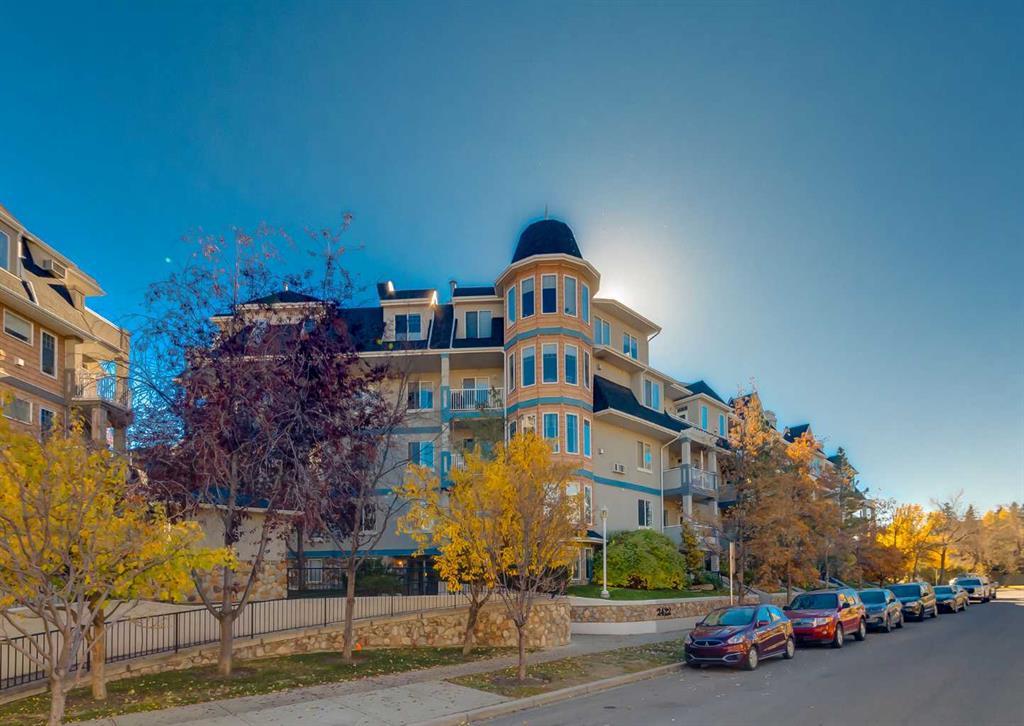 Luxurious penthouse with 3 balconies, 2 bedrooms, 2.5 bathrooms, 2 underground parking stalls and exquisite views! The popular complex of Waterford offers beautiful curb appeal, wonderful amenities and a prime inner-city location. Soaring vaulted ceilings, engineered hardwood flooring, designer lighting and abundant natural light come together to create a bright, airy and welcoming first impression. With over 1,670 sq. ft., this is one of the largest units in the complex! Being a corner/end unit allows for extra windows and both courtyard and downtown views plus no neighbours above for a quiet sanctuary away from the hustle and bustle. Flanked by windows the fireplace invites cool weather evenings gathered in the living room. Enjoy the warm climate on the first of three balconies, encouraging casual barbeques and an easy indoor/outdoor lifestyle that is enhanced by the breathtaking views. A large dining room with a wood pattern feature wall, funky lighting, grand ceilings and clear sightlines invites both elaborate and intimate entertaining. The gourmet chef’s kitchen inspires culinary adventures featuring granite countertops, a raised eating bar, stainless steel appliances and a plethora of crisp white cabinets. The stylish details continue into the powder room impressing your guests. Retreat at the end of the day to the primary bedroom with more than enough space for king-sized furniture. This lavish space is a true owner’s escape thanks to the private balcony, custom walk-in closet and private 5-piece ensuite boasting dual sinks, a deep soaker tub and a separate shower. The second bedroom is almost as luxurious with its own private balcony and walk-through closets that lead to a private ensuite. In-suite laundry, 2 titled underground parking stalls and a storage locker add to your comfort and convenience. Amenities in this sought-after complex are plentiful including underground visitor parking, a carwash bay with a vacuum and sprayer, a games room with a pool table and a banquet/boardroom. All this and a phenomenal location just steps to the LRT Station, extensive bike and walking paths, the Elbow River, Stampede Park, MNP Sports Centre and an off-leash park. Just a short walk to trendy 4th Street with numerous diverse shops, award-winning restaurants, quaint cafes and lively pubs. This unparalleled location has everything close at hand yet a serene landscape to come home to!