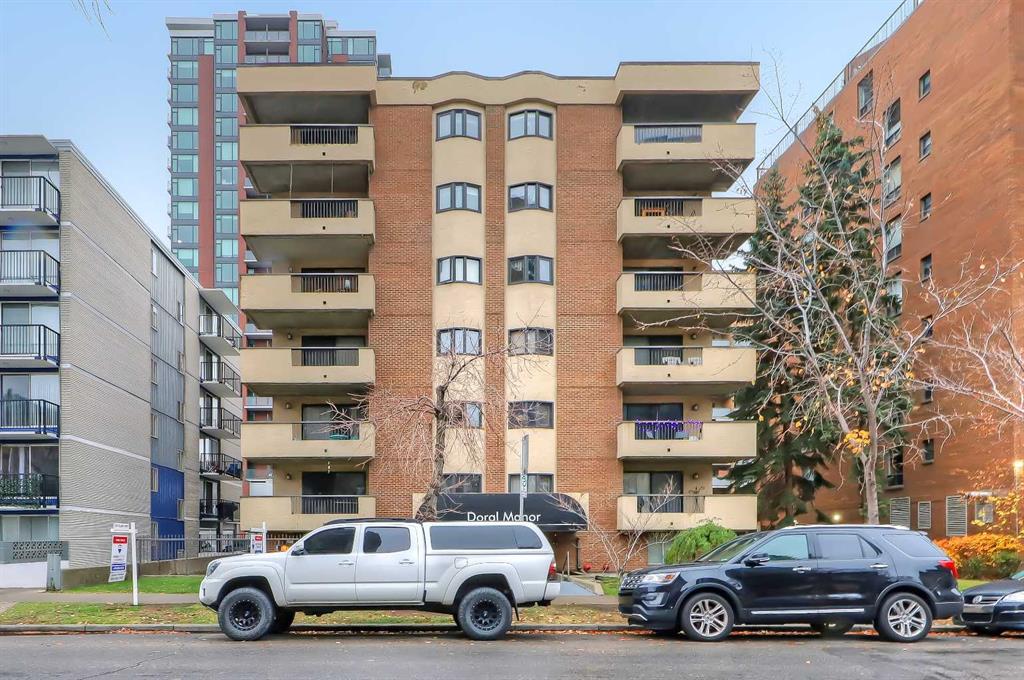 *VISIT MULTIMEDIA LINK FOR FULL DETAILS INCLUDING VIRTUAL TOUR & FLOORPLANS!* Urban living awaits in this exceptional TOP FLOOR, 2-BED, 2-BATH CORNER UNIT w/ LARGE BALCONY! Welcome to The Doral Manor, located in the trendy Beltline neighbourhood. This huge 970 sq ft unit is steps from inner-city amenities such as Analog Coffee, Trolley 5 Brewpub, Black Sheep Patisserie, Clive Burger, Browns Socialhouse, and countless others! This TOP-FLOOR, 2-bed corner unit provides an inviting blend of spacious living with modern conveniences, plus a sunny SE-facing balcony offering picturesque views of the nearby park and fantastic sunrise views over the city. The galley-style kitchen boasts elegant granite counters, and a stainless-steel appliance package, including a fridge, stove, a microwave/hood fan, and a dishwasher. Plus, there is ample cabinet space for all your storage needs. Two generously sized bedrooms feature plenty of closet space and bay windows. The primary bedroom has the added convenience of a half-bathroom ensuite featuring a vanity and toilet. The secondary bedroom is perfect for roommates, kids, or a great at-home office space. In-suite laundry and one underground parking stall in the heated and secured parkade add to the convenience of this fabulous space. Endless amenities surround the Doral Manor. Enjoy being steps from trendy 17th Avenue, with an abundance of unique eateries, shops, cafes, grocery options and fitness studios just around the corner! Within easy walking distance to the downtown core and close to several inner-city parks, this location can’t be beat – most days, you can leave your car parked and walk everywhere you want!