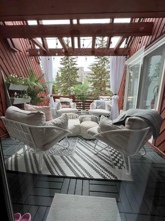 Step into the elegance of this fully renovated townhome, ready for you to move right in! Boasting over 1750 square feet of living space, three bedrooms, and 2.5 baths, along with a wood-burning fireplace and dual private balconies, this residence creates an ideal sanctuary away from the city's hustle and bustle. Meticulously maintained from top to bottom, the main living areas are flooded with an abundance of natural light and serenity, thanks to the floor-to-ceiling windows. Nestled amidst mature trees and just moments away from expansive green spaces, this property envelops you in a peaceful and tranquil atmosphere. The finished basement is thoughtfully designed, offering a versatile media/recreation room, a play area, and a well-equipped laundry room with ample storage. Close to downtown, shopping, schools, parks, bike paths and only an hour drive to Canmore and Banff. Pet friendly upon board approval.