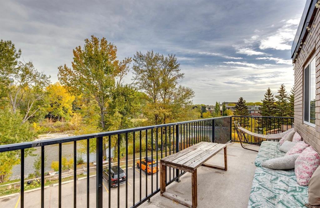 RARE river front, top floor corner 1 bedroom unit with a massive balcony with unobstructed Elbow River and downtown views! This north-west open plan corner unit is bright with tons of natural light features hardwood, an updated kitchen with quartz countertops and black appliances, a large island/breakfast bar, large principal spaces for entertaining that walk out to the 188sq ft balcony!! This will be the place for friends and family to be for watching the Stampede fireworks! At over 610sq ft, this very special property also includes a large primary bedroom, full bath, a storage room with a washer and dryer, an assigned parking stall with power (that you can see from your apartment and is within car starter distance ;) This Condominium is located in the heart of Mission, nestled between the Elbow River bank and a quiet, tree lined cul-de-sac. Within walking distance to downtown, the Erlton LRT station, shops, cafes, restaurants, bars, yoga & spin studios, grocery stores, the MNP sport center and amenities like salons and medical facilities... And if immersing yourself in the beauty of the outdoors is what you are hoping for you will enjoy taking leisurely strolls along the scenic riverbanks, the Reader Rock Garden, hoping on the many river path or trail systems or enjoying a quiet fire pit or picnic at home on the condos own private river bank!. The Condo fees include electricity, gas, heat, water, sewer, everything but the internet, phone and cable! With its incredibly unique massive top floor balcony overlooking the spectacular views of the river and downtown, unbeatable location, generous floorplan this residence is the perfect place to call home. Call your favourite Realtor to view!