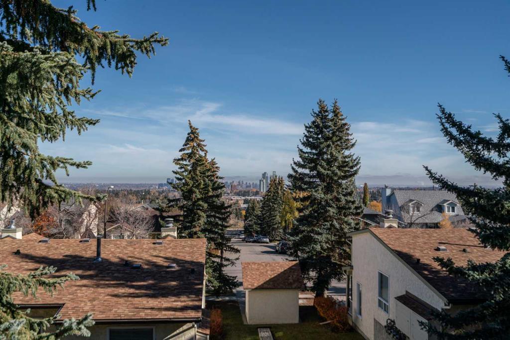 Fall in love with this bright reverse 2-storey home with spectacular views, DOUBLE ATTACHED GARAGE in the desirable community of Strathcona Park. This 2-bed townhome exudes pride of ownership! Meticulously maintained, with new, contemporary vinyl flooring (2022) throughout the main level and freshly painted living space. The main floor offers functionality and versatility while maintaining a cozy atmosphere. The spacious living room has a cozy wood burning fireplace with custom mantle and raised hearth - the focal feature of the room. The Chef in you will appreciate the large Eat-in Kitchen with ample cabinets, Stainless-Steel appliances (Fridge 2023), and room for a comfortable breakfast table. Host your friends and family on all occasions: dine in the formal dining room with open pass to the kitchen or enjoy a meal on your deck overlooking the City to the East. Retreat to your walk-out level primary suite and windup your day with a relaxing bath in your jetted tub after enjoying walking paths and nearby parks. Get ready for the day enjoying the comfort of your handy stand-alone shower, double sink vanity (5 pcs cheater ensuite) and your spacious His & Hers closets after waking up to the soft morning light trickling in through the bedroom window. The 2nd bedroom is perfect for a home office with sliders to the private patio. Bedroom level Laundry. All rooms are above grade. Enjoy all of this and the benefit of being just a 5 min. drive away from Westside Recreation Centre, C-train access, and all the abundance of amenities that Strathcona Park and West Hills have to offer - all while being only 20 min. from downtown and 5 min. from the new Stoney-Trail Ring Road extension that will take you to the airport in under 40 minutes. The City-Pathway System is right at your doorstep. Look no further, this home provides you with the practical and functional lifestyle you have been waiting for!