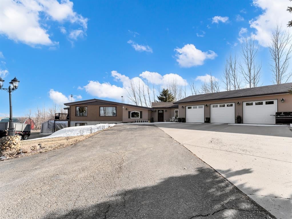 2.5 acres just minutes from City limits with pavement to your door. Huge 2180 sq ft bungalow with 1500 sq ft attached garage. This property has country living stamped all over it. Directly off the entrance to the home there is a large family and rec room with vaulted wood ceilings ,natural gas fireplace and billiards/games area. The main living space has fantastic natural lighting with large windows looking out over the property. Large kitchen with new stainless steel appliances, nice size dining area with room to stretch out for those large family gatherings and a fantastic living room with another fireplace wrapped in natural stone. Sunroom directly off of the kitchen is a great spot for your morning coffee. 2 bedrooms and a large 4 piece bath round out the main floor. The walkout basement has 2 additional bedrooms, 4 piece bathroom, great storage., summer kitchen and large family room. The basement has its own entrance and could be used as a separate suite or would make a great home office. City water is supplied by West Side Water coop. The mature treed yard has SMRID for the irrigation. Did we mention the garage? 50'x30' dream garage with epoxy floors, jackshaft garage door openers and ducted heating system. The west side of the property would be a fantastic spot for some horses or possibly that extra shop space you have been thinking about. It is currently cleared and ready for your development ideas. Call today for your private viewing of this great property