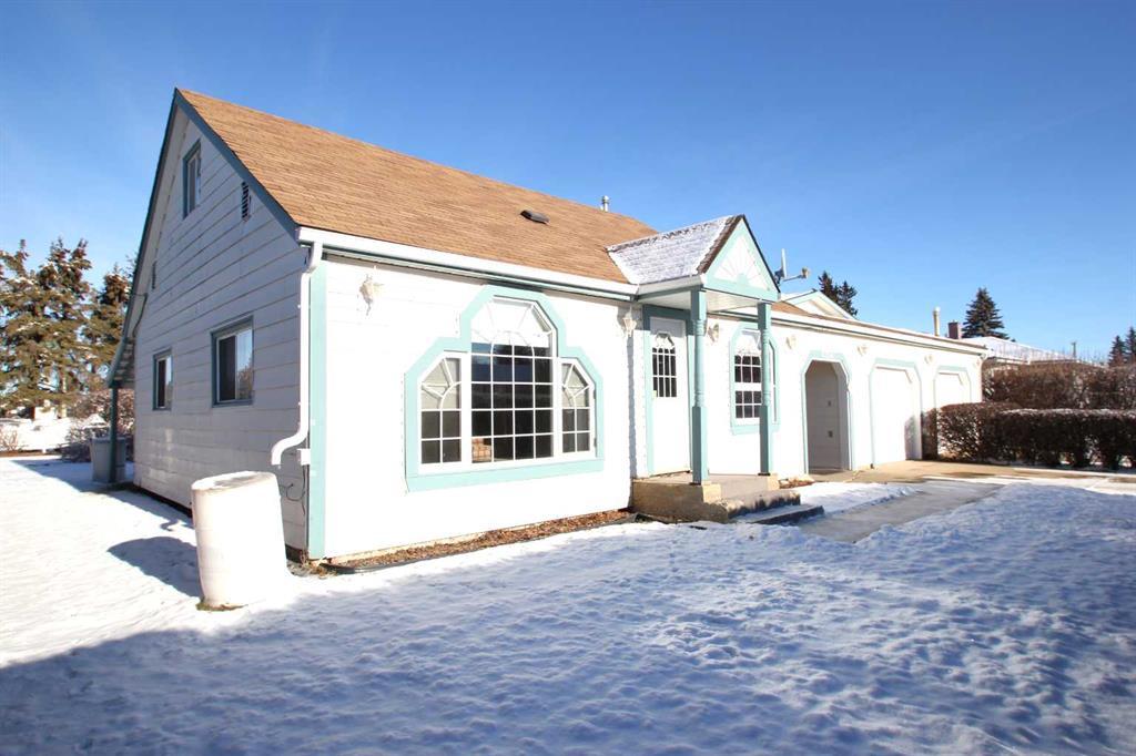 Looking for that great starter home or wanting to downsize to a mature private location. Close to shopping, School, library and the hospital all within a 2 min walk. Enjoy the peace and tranquility of small town urban living. Situated on a double lot of more than 9700 Sq ft. You will find this little gem that offers an adorable 1080 Sq ft. One and half story with 3 bedrooms 2 bathrooms and a fully finished basement that offers a spacious 21' family room with built in cabinets and a wet bar area, laundry room and 3 PC bathroom. Upgraded HE furnace and upgraded hot water tank. Private setting surrounded by a mature hedge and nicely treed yard. Great garage with more than 1000 Sq ft of cement floor space and an additional 336 Sq ft. of mezzanine all heated with 2 furnaces and a 11' overhead rear door. Garage measures 49' on the east side and was previously used for boarding and presentably has cages that can be removed if your wanting that big garage. An additional bonus of a 24'x12' shed/workshop. All 5 appliances have been upgraded. Quick possession is possible.