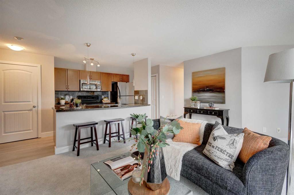 This 2 bedroom | 2 bathroom condo in The News has a bright and spacious layout and creates a place you want to call home. The kitchen features ample cabinet and counter (granite) space and opens to the living and dining areas, filling with natural light from the many windows. The king-sized primary bedroom has double closets and a 3 pc ensuite. The large second bedroom has a large closet and window. Some upgrades and features are new carpet and painted (2022), a large patio, insuite laundry, a fireplace, the unit is on the same level as the parkade, assigned underground parking and enclosed storage locker, visitor parking in front of the building, pet friendly, etc. You'll have access to all the amenities like the indoor pool, fitness facilities, tennis courts, pathways, and cityscape views from the common grounds. The location provides easy access to Ctrain stations, bus stop #93, and major routes such as Sarcee, Bow Trail, Old Banff Coach Road, and Stoney Trail, providing quick and convenient travel in, out, and around the city. The home offers high quality, affordability, and a prime location. *3D Tour Available*