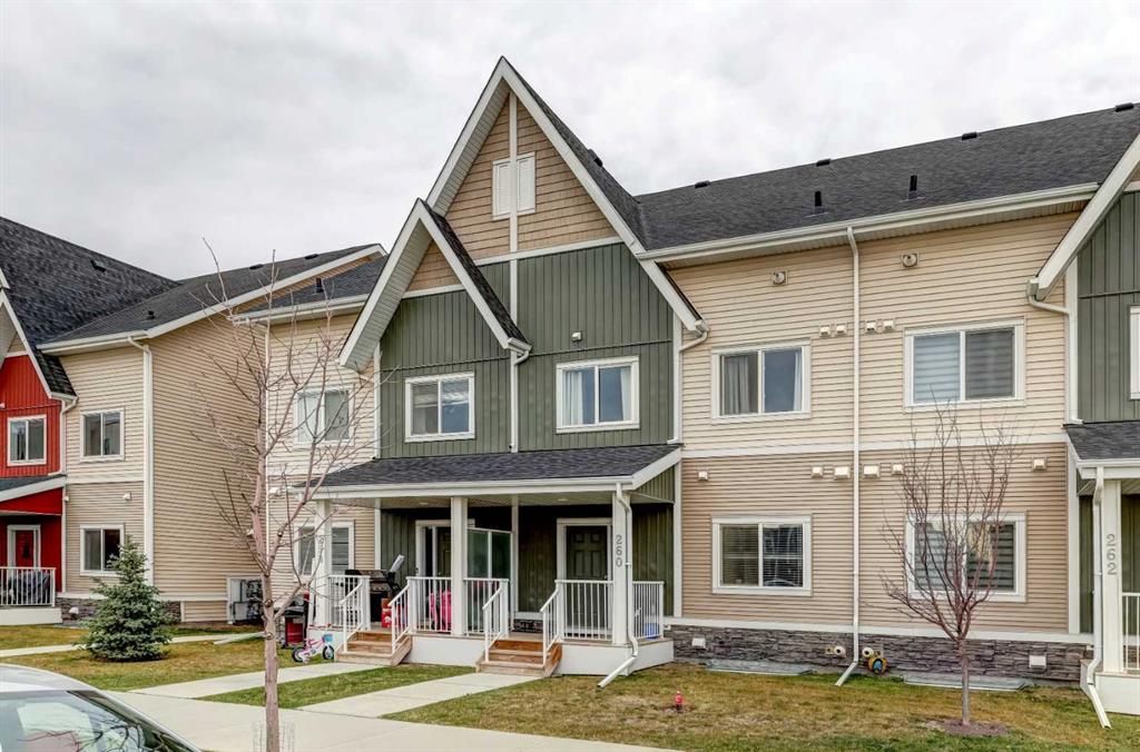 A beautiful townhome in community of Redstone with easy access to amenities, nearby playgrounds and shopping. This two Storey townhome is well designed, and it comes with 3 bedrooms and 3.5 bathrooms with great finishings. The features include vinyl flooring, full stainless appliance package, stone counters, tile backsplash and dining nook. Let's talk about Kitchen. The kitchen features white cabinets with ample storage space, island with barstool seating and corner pantry. The main floor is complete with 2pc bathroom. Upper level has 2 large bedrooms, In-suite laundry and 2 full bathrooms. The primary bedroom comes with walkthrough closet and ensuite bathroom. The second bedroom is spacious and bright. The basement is fully finished with 1 bedroom and full washroom and living space that can be used as Rec room. The complex is in great location with easy access to stoney trail and Calgary Airport. It comes with low condo fees. Don't worry about parking as unit comes with 1 assigned parking stall.