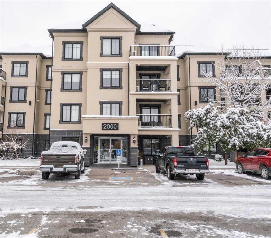 Enjoy adult 18+ living complex in "The Monarch" located in the heart of sought after McKenzie Towne. Elegant 2 Bedroom, 2 Bathroom, Air-Conditioned Main level unit, freshly painted in neutral tones. Open plan concept with Quartz Counters & Breakfast Bar, trendy glass backsplash, Stainless appliances (new fridge), pantry with ample cabinetry + Tile flooring. The spacious Great Room features a cozy corner Gas Fireplace for those cold winter evenings and features new Vinyl Plank Flooring, with doors opening to your West Patio where you can enjoy your evening dinner & coffee! Two generous bedrooms, split, on either side, great for privacy. Principal bedroom boasts a 4-pc Ensuite w/walkthrough closet, 3-pc Main bathroom w/large Walk-In shower. In-Suite Stacker Laundry. In-floor Heating. Titled, Heated Indoor Parking with easy access to your assigned secured Storage locker. Bike Storage. Pets welcome w/board approval. Enjoy the finest in condo living in this beautifully and well-maintained home, just a short distance to High Street shopping, dentists, drug store, transit, restaurants, banks and so many amenities. Easy access to Stoney & Deerfoot & 130th.