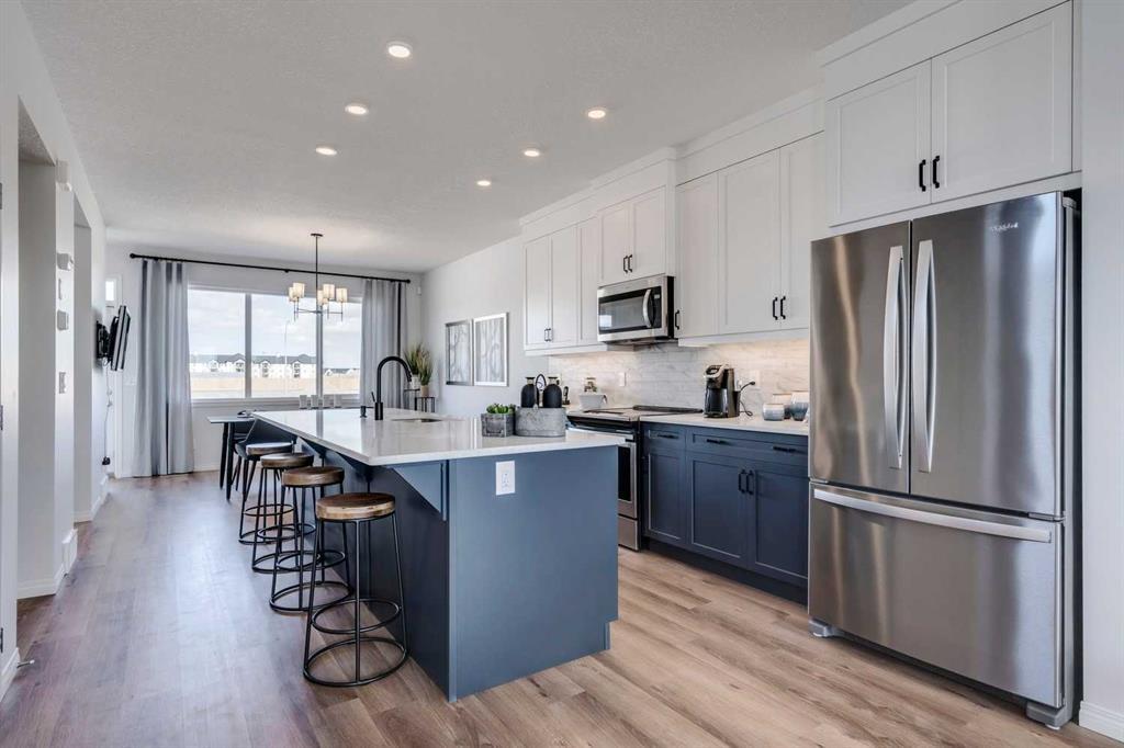 Welcome Home! to this Stunning Two Storey Detached*** Move-In-Ready*** Former SHOW HOME*** by TRICO HOMES boasts 3-bedrooms, 2.5 baths, and a versatile den/office room on main floor, CORNER Lot facing beautiful Pond View. Nestled in dynamic and family-oriented community of Midtown. The Incredible Dream Home showcases Lot Size of 3493 sq.ft. approx. fully landscaped with Rose Garden, a charming front porch welcomes you, setting the tone for the warmth and beauty that lies within, providing a mesmerizing space to relax and enjoy the serene pond view. Step inside to an open-concept layout with lots of natural light, creating a warm and inviting ambiance. Large windows provide stunning views of the pond. The heart of the home is a Chef’s gourmet kitchen featuring with High-end upgraded stainless steel appliances, sleek quartz countertops, chic back splash with (Calcatta Silver porcelain tiles horizontal brick pattern), abundant counter space, a large island with an eating bar and outlet for multi-tasking, two-toned soft-closing cabinets with mysterious blue matte and white contrast, complimenting each other and creating an environment that is both functional and stylish. The generously sized pantry is a fantastic addition, offering ample storage for your groceries, kitchen essentials, and more. Say goodbye to cluttered countertops, and enjoy the convenience of having everything you need within easy reach. The spacious living area features a gas fireplace with upgraded tile making a fantastic feature wall, creates a modern and inviting atmosphere, perfect for entertaining. Upstairs, the generously sized 3-bedrooms boast upgraded doors and ample of closet space. The master bedroom is sanctuary of luxury, featuring a spacious walk-in closet and an en suite bathroom with modern fixtures and upgraded finishes, perfect space to relax and rejuvenate after a long day. Two Additional bedrooms are well-proportioned and offer ample closet space, making them ideal for children, guests, or a home office. The convenience of an upstairs laundry room adds to the overall functionality of the space. The basement presents endless possibilities with its High 9-ft ceilings, providing ample headroom for future development. Roughed-In for Irrigation System. Enjoy the extra concrete parking pad for two car parking and an ideal potential for a Detached Double Garage. The developper has plans to add fencing for one side ***Available for Quick Possession in October 2023***makes it a perfect choice for those seeking a timely move. Whether you're a family looking for your dream home or an investor searching for a great deal, this property offers an amazing price for the value it brings. This attractively well priced, well-presented former show home has tons of upgrades and is a once in a life-time opportunity that won’t last long.