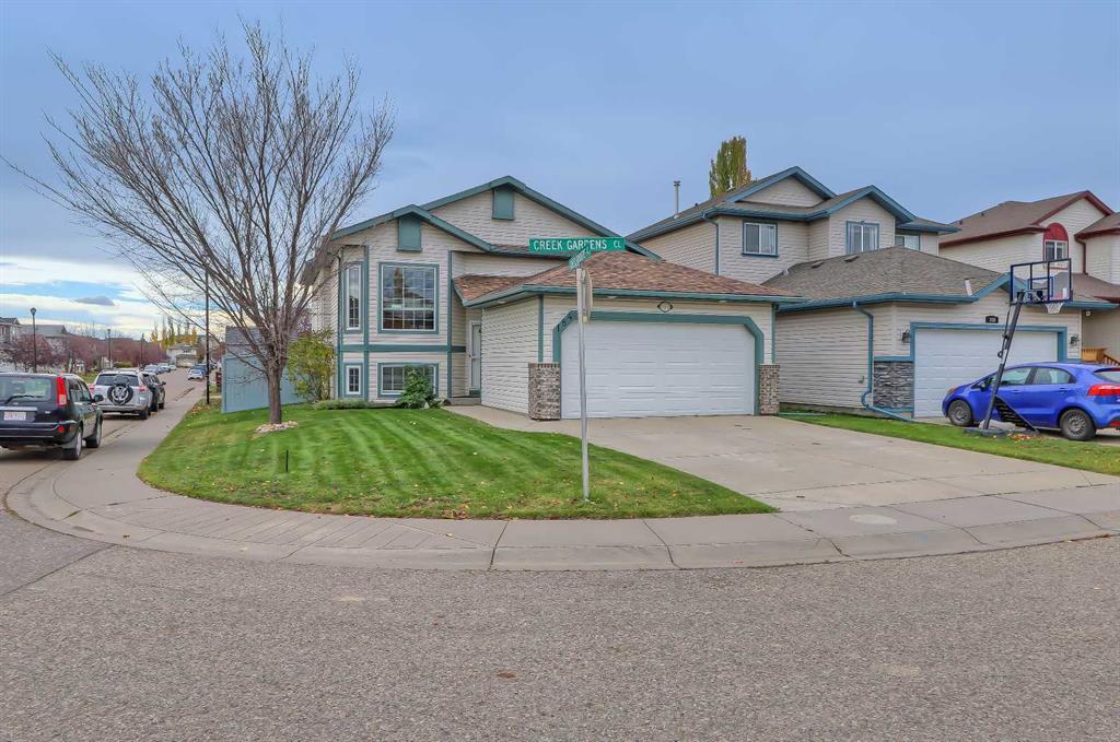 If you’re looking for a beautiful move-in ready home, this is it! New carpet and paint this summer and a new roof in 2022. A high-efficient A/C unit and a water softener was also installed in the summer of 2023. This charming bi-level home is located on a large, open corner lot in the desirable community of Silver Creek in Airdrie. Beautiful flowerbeds, bushes, and trees frame the house, enhancing the curb appeal. The south back yard is a perfect place to relax in the gazebo and enjoy gardening in raised beds. The home has a large front entry with closet, good for making your guests feel welcome. The elegant foyer has nice tall ceilings and stylish chandeliers. The main floor features a spacious formal living and dining room and a bright open kitchen for good circulation of air throughout the entire house. The kitchen has ample cabinets along with arborite countertops, stainless steel appliances (dishwasher & microwave were purchased in 2023), and a pantry for additional storage. Your relaxing primary bedroom has a 3-piece ensuite and large closet. A second bedroom and 4-piece bathroom complete the upper floor. The basement is a walk-up with a separate back entrance, with two large bedrooms, a 4-piece bathroom, laundry/furnace room (dryer is also new), a comfy den with fireplace, and a large flex room. This home is conveniently located close to various amenities such as schools, shopping centers, restaurants, and creek-side trails and parks along Nose Creek.