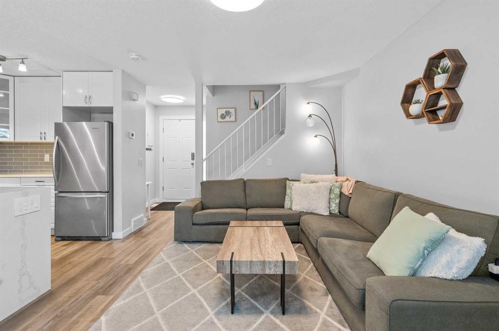 The photos don't do this place justice. It must be seen to be appreciated. This home is gorgeous with its wide open floor plan, quartz counters, luxury laminate floors. Newer patio doors make it easy to enjoy your private backyard. Nothing to do here but kick back and relax. There are 2 good size bedrooms and the 3rd / primary bedroom is gargantuan, taking up the whole top floor, complete with its own 4 piece ensuite. Both bathrooms have been tastefully remodelled. The complex is west of the Deerfoot with excellent access to the airport or downtown, close to dog parks, daycares, and disc golf. Enjoy the natural setting bordering on greenspace, both front and back. It's even connected to the pathway system if biking is what moves you.