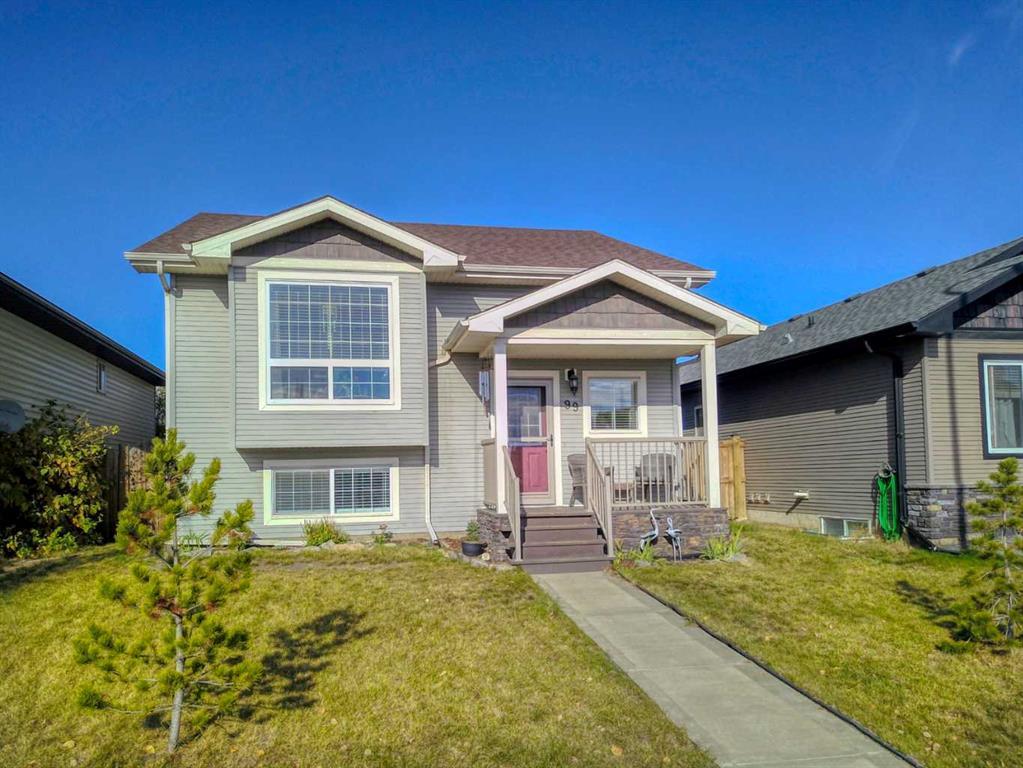 Super cute Abbey Platinum Master Built bi-level in Panorama Estates. This home shows pride of ownership and the freshly developed basement adds so much extra room for the family. Upstairs you'll find a bright open living room with a gas fireplace, the kitchen, and a dining room with a door to the deck. There are two bedrooms upstairs and a 4-piece bathroom. The basement is fully developed with 2 more bedrooms, a very large family room, and a 3-piece bathroom with a custom tile shower. There are no bi-fold doors in this house, only hinged doors - even on the closets. Off the dining room step out to the deck overlooking a nice low-maintenance yard with a fire pit and off-street parking to fit 2 vehicles. Blackfalds is a convenient community because everything is close by. The park a block away has a playground, soccer pitch, outdoor rinks, the Pine Crescent Community Garden, and the Sk8 Deck Skate Park. The Iron Ridge Intermediate Campus and St Gregory the Great Catholic School are only minutes away, and the Abbey Centre is just a 5-minute drive.