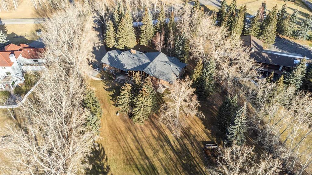 Welcome to this exquisite 2.03 ACRE, custom south facing BUNGALOW on the coveted street of Bearspaw Village Ridge (only minutes from the city limits)! Nestled behind a secure gate, this property ensures an unparalleled level of PRIVACY along with a lovingly landscaped, park-like yard (there is even an area for a skating rink at the back of the property past the current fence)! Upon entering the home through the grand foyer, prepare to be enchanted by the impressive vaulted ceiling with floor-to-ceiling windows that bathe the home in natural light, framing the stunning scenery beyond. Architectural details, such as curved archways and wooden beams, add a touch of charm and character to every corner. This stunning 5 bed, 3.5 bath home spans 2,822 sq ft with a captivating open-concept design, perfect for hosting gatherings. And to help with the entertaining, there is a large renovated chef's kitchen with granite countertops that connects perfectly with the dining room. A cozy wood-burning fireplace adds warmth and ambiance to this open living space. The main level also hosts three generously sized bedrooms, including a luxurious primary bedroom with a 4-piece ensuite WITH HEATED FLOORS, steam shower and an expansive walk-in closet. A 2-piece powder room, mudroom, main floor office and thoughtfully designed laundry room complete this level, ensuring practicality meets luxury. The fully finished basement offers additional living space, featuring a family room with a gas fireplace, a spacious rec room, a fourth and fifth bedroom, a 4-piece bathroom, and ample storage. This home even has laundry on both levels! The attached HEATED triple car garage offers even more built in storage providing further convenience. Recent UPGRADES include a new roof with leaf filter, air conditioning (2 zones total), and 2 new hot water tanks. If you enjoy BBQing, then the outdoor back porch haven awaits, encouraging you to embrace the joy of nature in your own backyard. The highlight is a stunning tiered deck and patio combined with a firepit—an area calling for both relaxation and entertainment as you soak in your private oasis. This home offers the space and privacy of acreage living while being conveniently located in the Northwest, close to essential amenities such as the LRT, Crowfoot shopping, and the majestic Rockies.