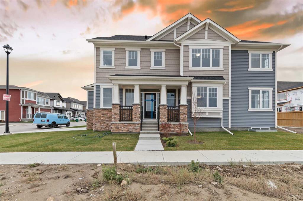 Welcome to this charming corner-lot gem in the heart of SW Airdrie, where the best of both space and convenience meet. This listing is more than just a home; it's a gateway to the ideal lifestyle you've been dreaming of. Main floor has extra large open concept kitchen with elegant white colour kitchen cabinets. Beautiful extra long kitchen island with quartz countertop. Direct access from garage to kitchen to unload groceries which should be a great help in winters. Nice two-piece bathroom on the main floor. Main also have a nice size den which can be used as an office. Large living room equipped with nice Fire Place which is shared with den. Nice light brown colour vinyl floor on main floor. Upper floor has three good size rooms. Primary room has a walk-in closet and beautiful upgraded ensuite 5 pc bathroom. Another four-piece bathroom and laundry room on upper floor. Good size closets in the bedroom 2 and 3 with sliding doors. Nice carpet in stairs and upper floor with high thread density. Basement is not finished. Nice corner lot property for a dream home. Future school provision is there at the open space in-front of house.