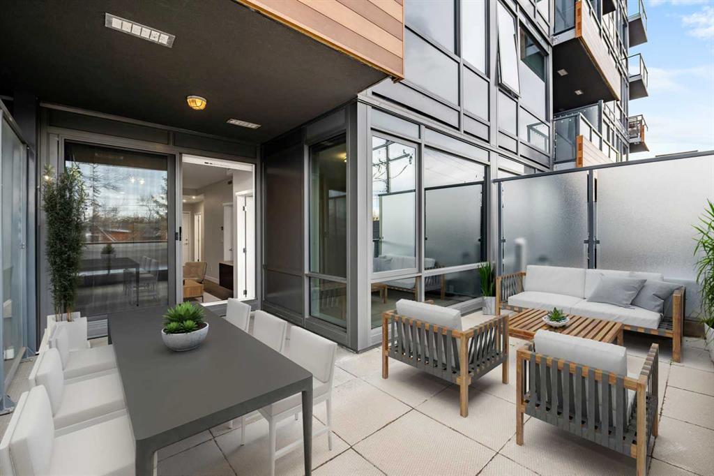 Your opportunity to own a quality BUCCI built condo in the heart of one of Calgary's most desirable communities. 'The Kensington' sits front and centre surrounded by local boutiques, coffee shops, diners, restaurants, grocery and parks, while being a short walk to the c-train line, river pathways + downtown office core. In this location, you have a walkscore of 97 along with a bikescore of 99, further proof that you are at the pulse of our city. Inside you will find a 1 bedroom, air conditioned unit boasting clean lines, large windows and fresh colour palette. The sleek + stylish kitchen will impress - showcasing quartz countertops, high-gloss cabinetry, tile backsplash and stainless steel Bosch/Fisher & Paykel appliance package. Craving something unique? How about the 220 sqft outdoor, west facing terrace. What a great spot for entertaining friends, basking in the sunshine and firing up the BBQ [gas line equipped]. Spacious bedroom with walk through closet into the beautiful bathroom with separate tub + shower. $15,000 of upgrades and improvements including built-ins, add-ons and California Closets throughout. This space may seem smaller on paper, but it is a storage haven with all the well thought + custom designs...truly it's a must see. The unit also comes with underground parking along with a storage locker. Enhance your inner city experience and live where you play!