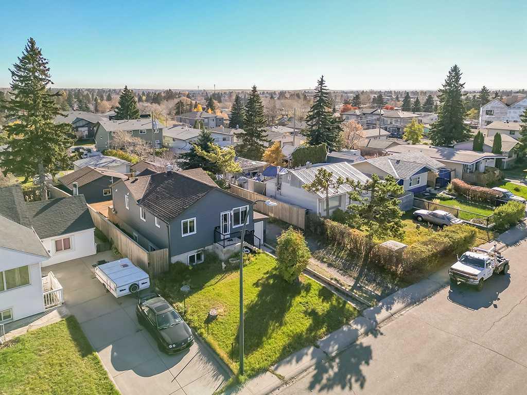 Renovated bungalow on a quiet street and large lot just steps from schools, parks, playground, amenities and transportation. The upper level features three bedrooms, a spacious living room, dining room, kitchen, four-piece bathroom and laundry. Fully finished lower level (illegal suite with separate entrance) offers a large living room, second kitchen, bathroom and two bedrooms. Renovations include kitchens with stone counters, newer cabinets, newer appliances and newer flooring and knockdown ceilings throughout. Exterior of the home boasts newer windows, siding and shingles. Property affords loads of parking with a front driveway and a newer double detached garage. This is a fantastic property in an ultra-convenient location just minutes from Calgary's downtown with an illegal suite ideal for an income helper or investor.