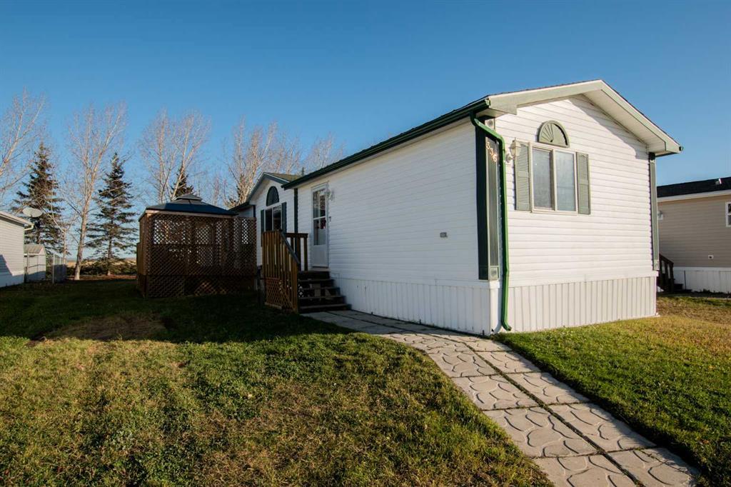 Located on a rented lot in Silverpointe. Enjoy low county taxes but being close to all amenities on the West side of Grande Prairie like the Airport, Costco and more. This 3 bedroom, 2 bathroom mobile home is well taken care of. Upon entry is an open boot room with front closet and coat hooks. Your living room features an electric fireplace in the corner, a large window letting in plenty of sunlight and built in shelving. The kitchen has all black appliances, plenty of counter & cupboard space and a pantry. Connecting everything is a spacious dining room with patio access to a deck with gazebo and flower planter boxes. Your primary bedroom is located at the back of the home with a walk in closet. The 4 pc ensuite has great counter space and features a jetted tub. Two good sized bedrooms with one of them having a walk-in closet and a full bathroom complete the front of this home. Laundry is in a separate room with access to the deck and backyard. Enjoy paved walking trails behind the home, no rear neighbours, plenty of trees and a large shed offering plenty of storage space. Vacant and ready for new owners, book your showing today!