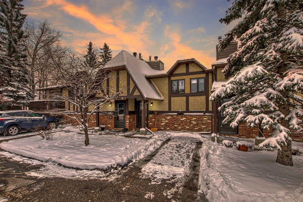 WELCOME HOME! Imagine yourself: relaxing with a glass of wine, next to your crackling wood-burning fireplace, taking in the sights of the Rocky Mountains, and seeing Canada Olympic Park lit up at night, right from your sofa in your new living room! It honestly doesn’t get any better than this! We proudly welcome you to Storybook Gardens, an amazing 18+ townhouse complex, where it’s time to start a new chapter and make Storybook Gardens your new home! This lovely 2 bedroom, 1 bath home is move-in ready! Upon arriving, you will thoroughly enjoy the tranquility that this complex offers – with towering fir trees & endless amounts of green space. Upon entering through your private entrance, you will immediately fall in love with this bi-level home. Upstairs you are greeted with TONS of natural sunlight, that shines through your massive southwest-facing picture window in the living/dining area, glass sliding doors, as well as the other two windows that are on this level, including one right over the kitchen sink! All windows & the sliding patio doors have been upgraded, helping keep your heating bills to a minimum! Speaking of staying warm, you will LOVE your beautiful wood-burning fireplace in the living room, which enhances the cozy appeal of this home even more! Your large southwest-facing deck will be your favourite place to hang out on a warm summer day, taking in all the sunshine! On the lower level, this home features two large bedrooms. Both bedrooms will be able to accommodate plenty of furniture and are perfectly situated with the full bathroom close by + laundry on this same level. The laundry room & under-stairs storage offer plenty of space! This home has just had brand new flooring installed throughout much of the home – including luxury vinyl plank flooring & plush new carpets installed on the stairs & the 2 bedrooms; as well as new baseboards that make this home pop! To complement the new flooring, you will also enjoy the lovely and natural new paint colour throughout the home. You won’t have to worry about an expensive furnace anytime soon, as the current owners just recently replaced it (2023). This complex is well maintained, has kept condo fees at an affordable level (and even includes your water, wastewater, & garbage/recycling/compost), and is situated close to many amenities. The home is within walking distance to Ranchero Park, Ranchlands Community Park, and Crowfoot Crossing and includes everything you could ever want – shopping, including grocery stores, coffee shops, pet stores, hardware stores, Crowfoot Cinema, an endless number of restaurants and so much more. Also situated within minutes of your new home is the Crowfoot LRT as well as access to major Bus routes, various off-leash dog parks, schools of all levels, and minutes from Nose Hill Park! This home is not going to last long, so be sure to book your private viewing today!