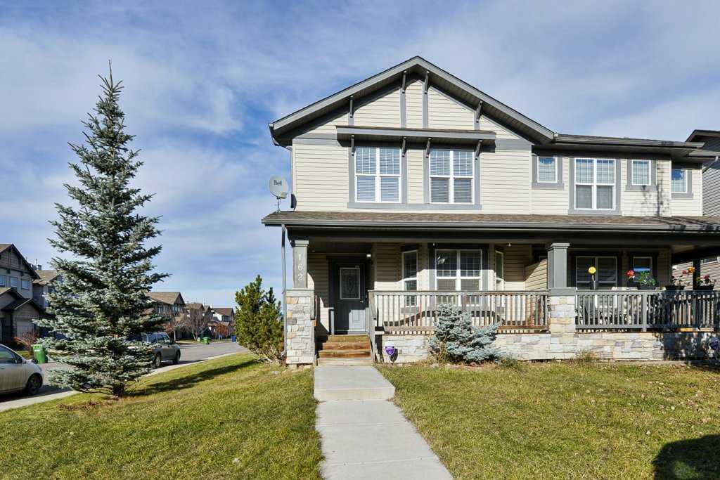 Nestled on a private corner lot, you'll discover this charming semi-detached home, boasting 3 bedrooms, 2.5 bathrooms, and a spacious 1,479 square feet of living space. As you approach, a sunlit front porch extends a warm welcome, inviting you inside. Step through the front door to reveal gleaming hardwood floors that gracefully adorn the open-concept main floor, encompassing the living and dining areas. Here, a large bay window floods the space with natural light, creating a warm and inviting ambiance. Adjacent you'll find a generously sized, well-appointed kitchen that features granite countertops, an abundance of cabinet space, a sizeable center island with a raised bar for casual dining, and a cozy eating nook. A discreetly located half bath adds convenience to the main floor. Moving to the upper level to discover three spacious bedrooms, convenient second floor laundry, and the main bathroom. The master bedroom features a full en-suite bathroom and a generously sized walk-in closet. The basement remains a blank canvas, offering endless possibilities for customization to suit your unique preferences and needs. This property is ready for immediate possession, and it is perfectly situated in a fantastic location. The rear yard provides additional parking and lots of room for a future double garage. Enjoy easy access to nearby parks, pathways, schools, and all the amenities that Airdrie has to offer. Don't miss the opportunity to make this tranquil haven your new home.