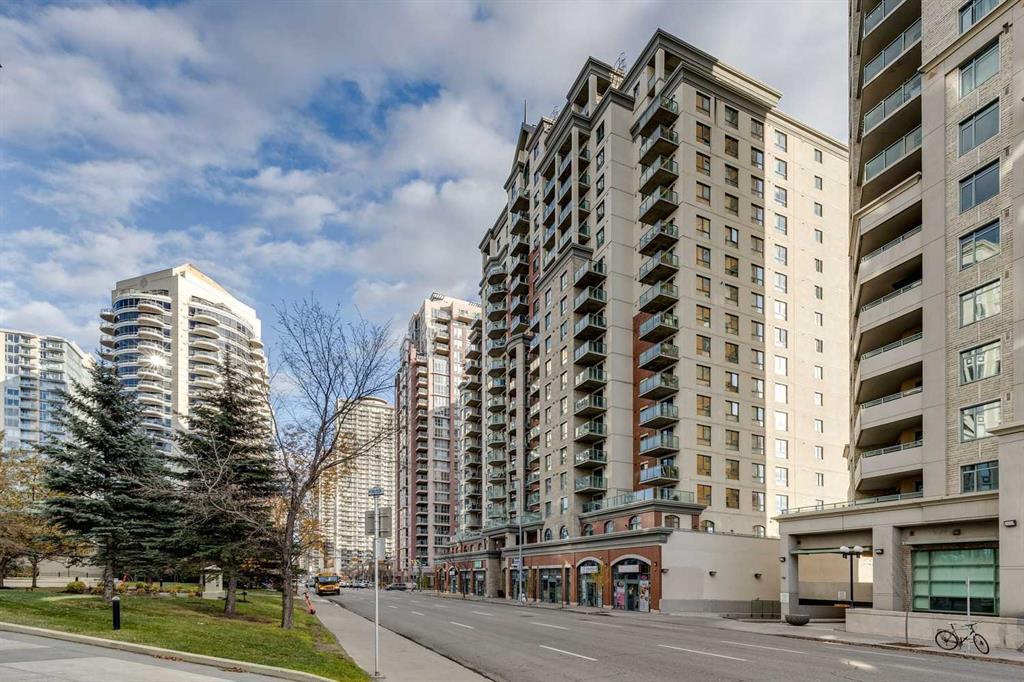 This condominium is located in the Downtown West End, situated on the 11th floor of the building and has a total area of 613 sq.ft. The condo features an open concept layout from the living room to the dining room and kitchen area. The kitchen boasts plenty of cabinet space and a large breakfast bar. The living room has sliding patio doors that lead to a patio with a gas BBQ line and with views of the Bow river. The suite also includes a washer and dryer and plenty of closet space. Underground titled parking stall on P3 parking spot 88 is included. The building amenities include a full gym. Located close to the C-train, and a very short walk to the river and it’s pathways, Millennium Park, Contemporary Calgary Art Gallery, Mewata Armory and Military Museum, plus all the shopping and restaurants of the downtown core. Lots of parking is available in the back of the building. This condo is perfect for anyone who seeks a great location at a fantastic price. If you are looking for the convenience of downtown living, this is the location for you!