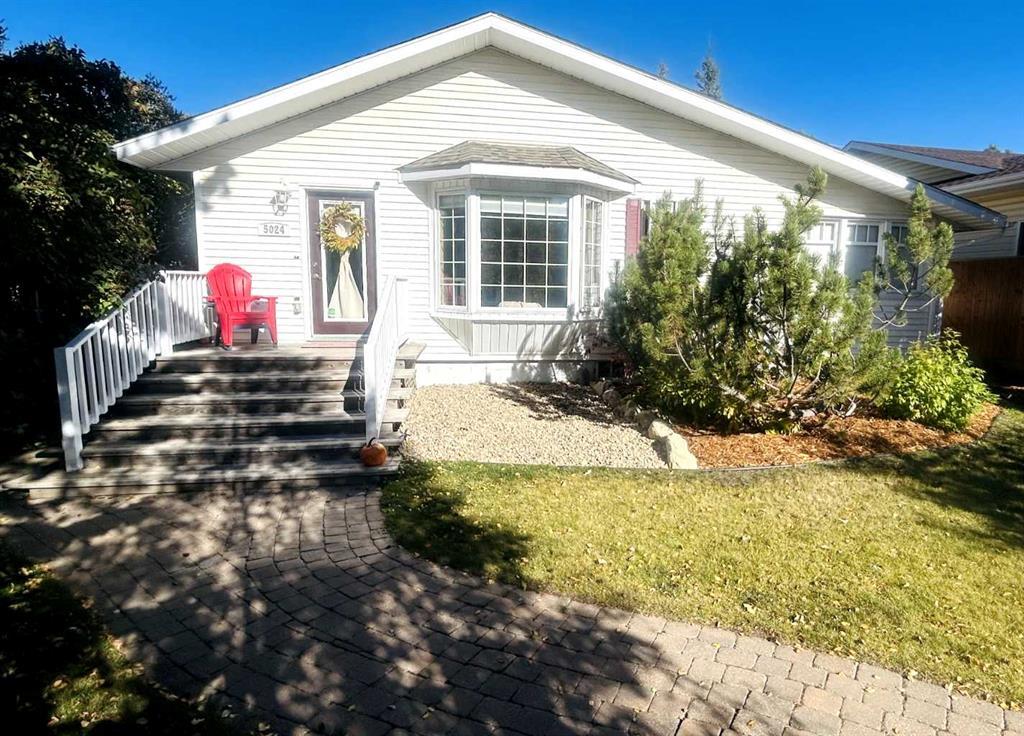 This home is one you have to see, a rare find. Only 3 blocks from downtown, main street and shopping. Schools are 1 block away. A very desirable location in the heart of Innisfail. This 2 bedroom, two bath, bungalow has curb appeal. The entire yard has all been professionally landscaped front to back, and is completely fenced for privacy, or pets. Once inside this beautiful home, you are welcomed by a spacious entry way, room for all. This open concept home allows light to stream in throughout the home. Keeping with the era of the home, the majority of the home is hardwood, adding warmth, and character, a bonus to any space. The windows are upgraded, and ready for the winter season. A valuable upgrade is the windows, and the window coverings are custom push down/pull up, as an added bonus.. The appliances have all been upgraded, another great addition to consider. The kitchen is cozy, has upgraded faucets, and is ready for entertaining, or making your favorite meal. The charming main bathroom has been newly renovated it has a deep soaker tub, lots of room, and extra storage. The modern office space is in a bright area of the home, perfect for a student, or any family member. New modern washer/dryer perfect for all, tucked away just off the the back entrance. This home has tons of natural light, lots of storage, and so many valuable upgrades, it is a true gem. New furnace fan July 2023, furnace is clean, and has a reusable filter. This home is also equipped with a water filtration system, what a great bonus to this home. The yard is such a oasis, as it has a Studio shed 7.5x14 perfect for additional space. The second is a Workshop/Guest Suite shed 10'4'x10'4" with full windows, both of these are equipped with power. A third storage shed is also 10'4x15'7". The fully fenced backyard has a private deck off the back entrance, great place to visit and BBQ, there is also a nice firepit area, perfect for evenings. This home is on a lot that is zoned R3 which could leave lucrative options for the new owners, in the future. This charming home has so much to offer, it has true character, some elements are preserved, a true cozy feel, coupled with modern classy decor, so many upgrades, this home is move in ready. Pride of ownership is apparent and this home is ready to be enjoyed by the new owners for years to come. Location, history, modern feel, a great yard, valuable upgrades, with proven good solid bones, you can't miss this one!