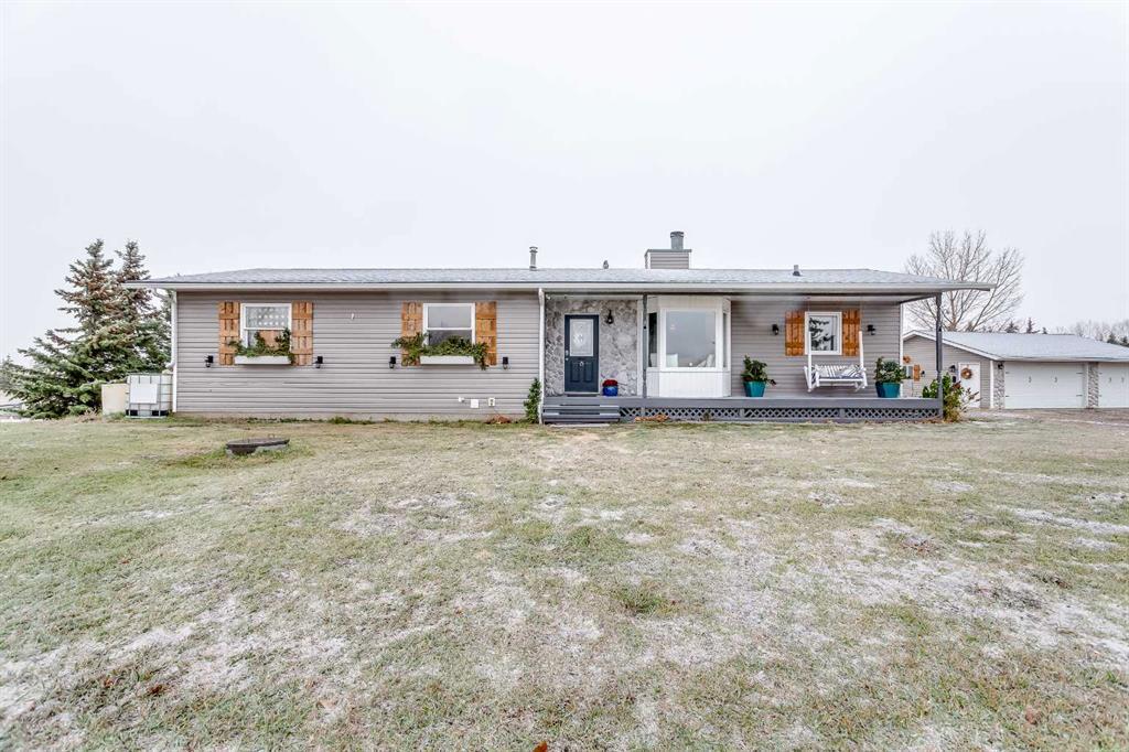 WHERE WILL YOU GET 4.57 ACRES CLOSE TO EVERYTHING BUT STILL VERY PRIVATE. LOCATION LOCATION !!! Welcome to your dream Property located in a prime location near the bustling City of Calgary and the City of Airdrie This lovely home sits on a sprawling 4.57 acre lot and offers a perfect blend of tranquility and convenience. Hill top location features nice panoramic city and mountain views .You are just minutes away from shopping at the Cross Iron Mills Mall, Airdrie and Calgary Hill top 1,483 sq .ft. walkout bungalow on 4.5 acres located in the Balzac ASP area, and close to Cross Iron Mills mall and the developing Balzac area. Main level features a stone-face two-sided fireplace open to the great room, kitchen and dining area. Three bedrooms up with a full bath, including a spacious Master suite with his/her closets and Ensuite bath. Sunny, south-backing walkout level has a large games room, media room, a large bedroom, three piece bath, and large laundry room. Lots of parking in the circular driveway and triple garage. Fenced for animals, with a good Well and Rocky View Water Co-op close if you required a hook up if you subdivide. Lot is subdividable with the Home perfectly located to make the treed driveway a perfect cut off for the subdivision. Walkout basement provides easy access to the beautiful outdoors and plenty of natural light, The spacious three car garage is prefect for a car enthusiast or extra storage, This property is not only a home but an opportunity to embrace the serenity of country living with the convenience of urban amenities. Don't miss the chance to make this fantastic location your own. A Kennel, a bed and breakfast, Horses, for example would work on this property