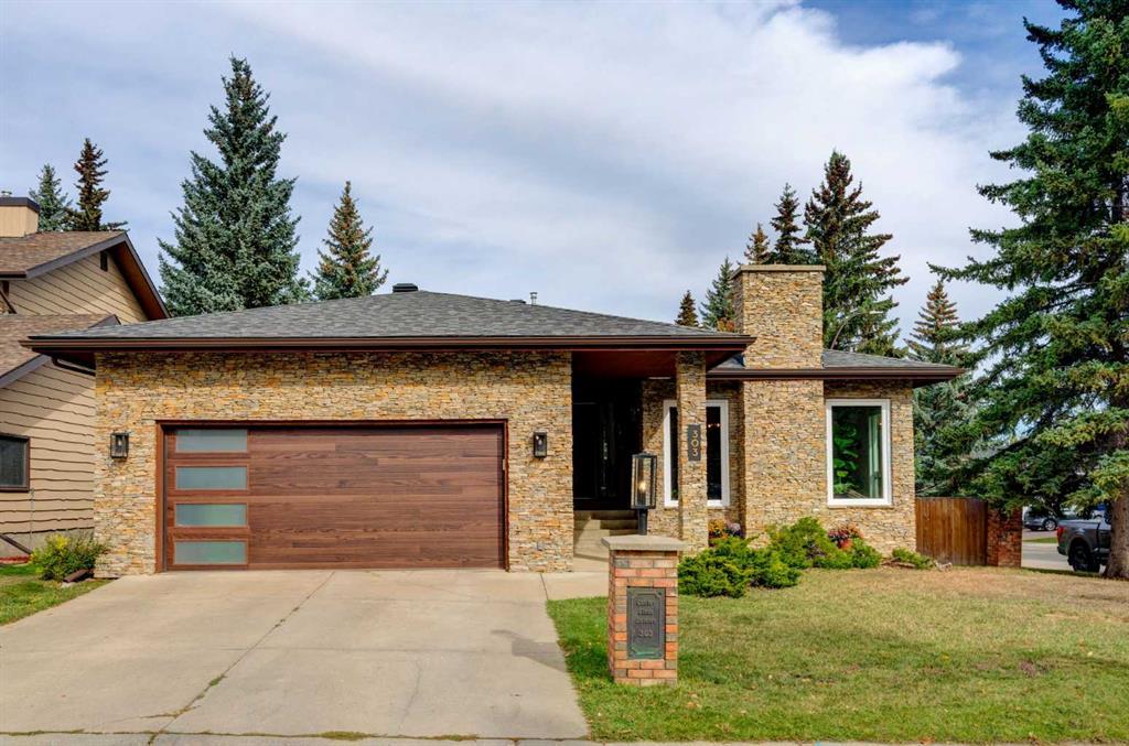 5 BEDROOMS | 4 BATHROOMS | 4,000 SQFT OF LIVING SPACE | CHEF'S KITCHEN | NEWLY PAINTED | CORNER LOT | QUIET CUL DE SAC | Welcome to this exquisite bungalow nestled on a corner lot in a serene cul-de-sac in the heart of Canyon Meadows Estates! This extensively upgraded home features over 4,000 sq ft of living space with 5 bedrooms and 4 full bathrooms, perfect for a large family. You are welcomed into the home with a large foyer with open views to living room with captivating stone-faced wood burning fireplace, and formal dining area. The spacious gourmet kitchen with three skylights is a chef's dream and opens onto a back deck with bbq gas hookup, perfect for entertaining! The kitchen is adorned with elegant granite countertops and showcases custom cabinetry, stainless steel appliances, double ovens, a gas cooktop, beverage center, custom wine rack, prep sink, under-cabinet lighting, and more. Enjoy the additional area with gas fire place and built in shelving to read a book with a drink or add an additional seating area. The master retreat features a spacious living area, large windows and sliding doors opening onto the back deck for a private retreat. Enjoy the luxurious 5-piece ensuite with free standing spa tub, and heated floors. The main floor also features two additional bedrooms 4-piece and bathroom. The fully developed features two generous entertainment spacious, complete with a well-appointed wet bar, and third fire place. The lower level can also be accessed from a separate staircase off the garage and offers two additional spacious bedrooms, each with walk-in closets, one of them with its own ensuite. The basement is complete with a spacious laundry room and very large storage room. The homes has had many updates in the last two years including renovated main floor bathroom, new paint throughout, new windows on the east side and front of the home, updated light fixtures inside and out, and new dishwasher and microwave. The home also has an oversized garage with 220V and hot tub hook ups and wiring in place in back yard. Enjoy this great community and location within walking distance to schools and fitness centre. Don't miss out on this fabulous home! Book your showing today!