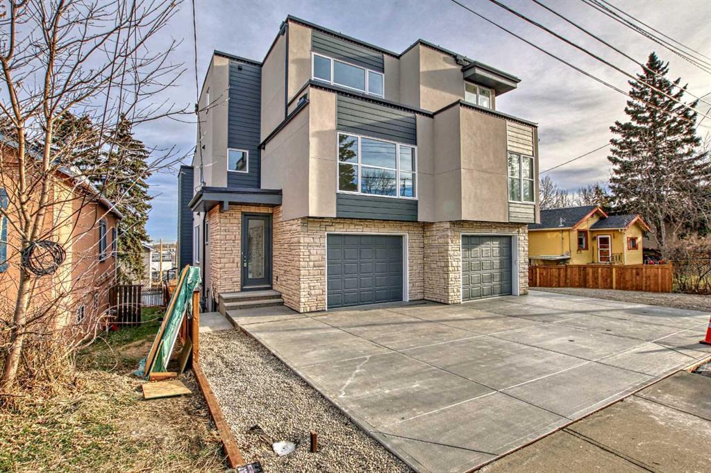 Welcome to this stunning 2410 sq ft RMS above grade (builder size 2313 sq ft above grade) custom built brand new infill. Curb appeal is enhanced by a stylish blend of high quality low maintenance stone, acrylic stucco and composite Hardie board siding. Spacious main floor entry with an incredible sense of arrival, closet and direct entrance to oversized single garage, which is complete with insulation, drywall, large concrete pad, room enough for 2 cars, equipped with door opener and remotes as well. Please note very rare to enjoy an attached garage entrance in most modern infills! Next is the gourmet kitchen - transition across your luxury hardwood flooring through this open floor plan and you will witness how elaborately equipped it truly is! Well thought out to enhance the cooking preparation experience with high quality quartz countertops and an amazing island to match, soft close feature on all drawers and custom cabinets, breakfast and eating bar, pendant lighting, stainless steel Samsung appliances and all efficiently arranged for your convenience - get ready to enjoy! Spacious main floor living room is an oasis complete with a Kingsman gas fireplace located ideally on the inner wall and so much space for all your furniture placement. Step out your living room and enjoy the raised dura-deck decking, loads of room for your patio furniture, BBQ and elevated views to the east! Second level leads to an abundance of space with two bedrooms, both complete with 4 and 5 pc ensuite baths, large walk-in closets and the primary retreat is equipped with a stylish free standing soaker tub, double vanities, stand up shower with tile accents and more amazing elevated views to the east! For the utmost of convenience the laundry room with matching quartz counter tops and sink located on this level as well,. High end flooring throughout with deluxe engineered hardwood, luxury carpet with 8oz underlay and designer ceramic tile. Third level loft offers all kinds of potential, will it be the 4th bedroom with 3pc ensuite bath and walk-in closet, or the perfect home office, or the quiet family room away from it all? Stepping down to the fully developed walkout basement area you will find another spacious bedroom, 3 pc bath with full ceramic tile shower surround, large family/rec room, 2 storage areas and a walkout to the very private, fully fenced yard complete with concrete patio. Lower level is also roughed in for in-floor heat if ever required. Heat system is already supported by double furnace system with 2 thermostats. Loads of natural daylight throughout and with such an incredible and unique floorplan is an absolute must to see! Floorplan is perfect for the young professional couple or family with growing children. Progressive new home warranty included by builder. This quiet "no through traffic" location is conveniently close to future C-Train station, downtown, all transit, traffic routes, schools, restaurants, and shopping.