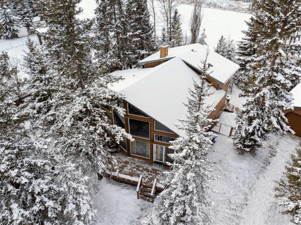 Welcome to your own piece of paradise! This 1 ½ story home is situated on a beautifully treed ½ acres lot that backs on walking trails and a short stroll to the Red Deer River and Downtown Sundre. As you approach on the circle drive the front of the home is all windows, flooding the house with natural light and views of your private oasis. Once inside you’ll be stunned by the vaulted ceilings, the kitchen offers ample storage and counter space and opens to the combined dining/living room, great for entertaining or cozying up to the fireplace. The main floor has 2 large bedrooms, family room with wood burning stove, 3pc bathroom and laundry. Upstairs you will find the large primary suite upstairs with loft, walk in closet and ensuite and plenty of storage. The fenced back yard offers a large deck overlooking the firepit, the detached double garage has been converted to an office space with gas fireplace for a home business, plus 1 parking bay. This home is on Town services so no stress of a well or septic. Hot water heater and carpets were replaced in 2022, new furnace 2023. Call to book your showing today