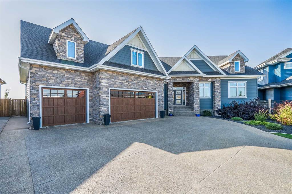 Discover the quiet sophistication of this 2,990 sq ft custom raised bungalow with an additional 780 sq ft bonus room above the garage. Tucked away in a cul-de-sac backing onto Bud Miller this home has been uniquely placed on the lot for maximum privacy and generous views of the park trails. The main floor of this house is nothing short of impressive with heated tile floors throughout, a great room with contemporary feeling gas fireplace featuring floor to ceiling tile, triple pane windows adorn the west wall giving spectacular picturesque views in all seasons. The kitchen is a culinary masterpiece with custom cabinets, upgraded stainless steel appliances centered around an impressive island with seating area, and a butlers pantry. The primary retreat is tucked away at one end of the house and a retreat it is with a spacious walk-in closet with built – ins, ensuite with sauna, soaker tub and custom shower. Three bedrooms, including one with attached bathroom are on the other side of the house along with office and additional bathroom. The bonus room above the garage is the perfect place for the older kids to hang out or make it into the ultimate family theatre room, this home is wired with speakers throughout. No shortage of options in this house, the basement has heated floors and is wide open with a large entertaining area, wet bar, separate gym space with specialized flooring, additional bedroom and bathroom, cold room (ideal for the wine connoisseur), plus storage room. The triple car heated garage with heated floors has a drive thru bay leading to an exposed aggregate slab. This home is truly one of a kind and a must see to enjoy all the extra’s and custom touches!! Call us today and let us show you your dream home!