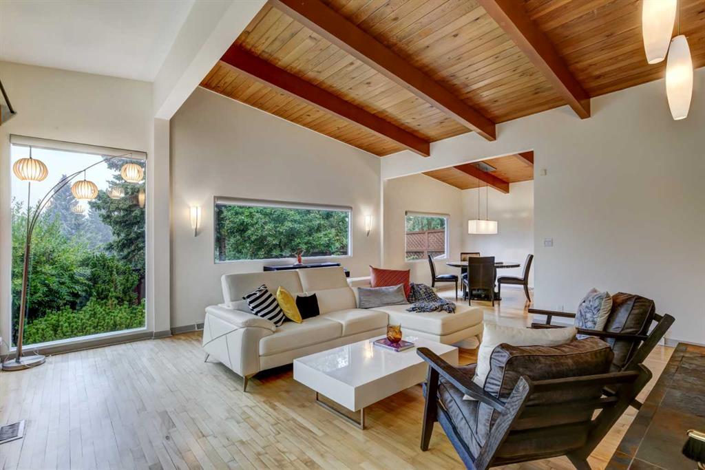 Rare opportunity knocks! Welcome to the prestigious FOOTHILLS ESTATES in the highly desirable community of Collingwood surrounded by beautiful green spaces and parks. This gorgeous updated bungalow is situated on an extremely well landscaped 60’ x 115’ lot perfectly situated on a quiet street with total privacy. Offers 1450 sq.ft above grade and a total of over 2500 sq.ft of developed living space. As you step into the home, you are greeted by a spacious and welcoming entryway that showcases the open concept layout and the high wood beam ceilings offers a unique and contemporary architectural style that combines the charm of a bungalow with the elegance of exposed wood beams. The living area is bright and airy with large windows that maximize the amount of natural sunlight with breathtaking views of the surrounding landscape. The living area also features a fireplace, adding warmth and a cozy ambiance to the space. The modern kitchen is seamlessly integrated into the open floor plan boosts upgraded stainless steel appliances, sleek custom Empire kitchen cabinets and a large pantry. A dining area adjacent to the kitchen, offers a comfortable space for family meals and entertaining guests. The Master's bedroom is conveniently located on the main floor with it's own private en-suite, an additional bedroom with a four piece bathroom and the generously sized laundry room completes this level. The lower level is fully developed with a huge recreational room with the second fireplace, large windows offers abundant natural lighting and the 3rd bedroom with a three piece bathroom makes it a complete separate living space. Additional storage space next to the utility room, many upgrades over the years including S.B.S. modified bitumen membrane roof w/upgraded insulation, high efficiency furnace, block retaining wall, all bathrooms and laundry room with sink, heated tile floors, stone patio and much more! The double garage has been extended on one side to allow space for a workshop. This modern bungalow infuses the space with a sense of sophistication and craftsmanship. Enjoy easy access to renowned schools, upscale shopping, gourmet dining, downtown Calgary, and world-class amenities such as the Calgary Winter Club. The nearby Confederation Park Golf Course provides opportunities for golf enthusiasts to enjoy the game. Additionally, the community offers access to an extensive pathway system for walking, jogging, and cycling. Book your private showing today!
