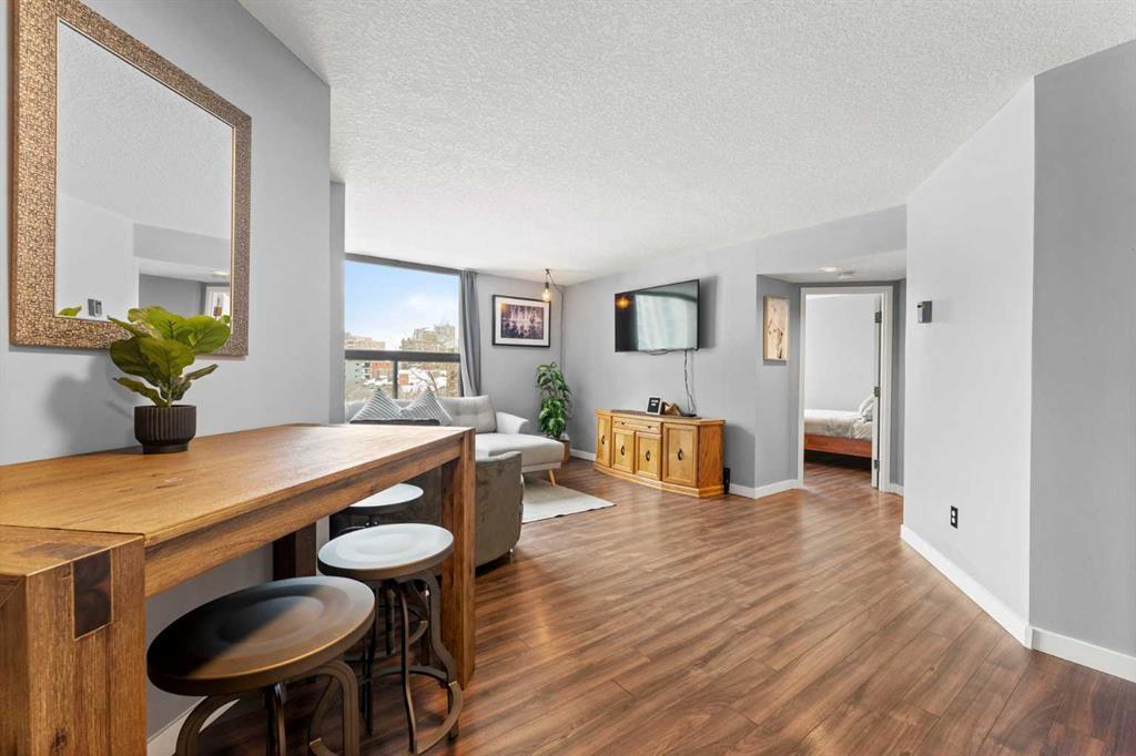 Location Location Location! This absolutely Stunning 1-bedroom, 1-bath condo is the epitome of modern living. Plus let me say at this affordable pricing rarely you find a high-rise unit with in-suite laundry, and underground parking. Walking distance to multiple amenities including gyms, grocery stores and restaurants. This home offers a sleek and stylish retreat for its fortunate new owner. Step inside and be captivated by the contemporary design, featuring an open-concept layout with updated flooring, cabinets, and elegant quartz countertops. The spacious bedroom provides a tranquil oasis, complete with ample closet space for all your storage needs. PLUS the unit has an extra storage space by the entrance for all outdoor equipment, bikes, or just extra pantry space. With in-unit laundry for ultimate convenience, this condo offers both style and functionality. Additionally, the furniture can be negotiated into the price. The dinning table and Bed frame are BRAND NEW right out of the box. This condo is a rare gem and won't last long on the market. Don't miss your chance to make it your own. Schedule a showing today!
