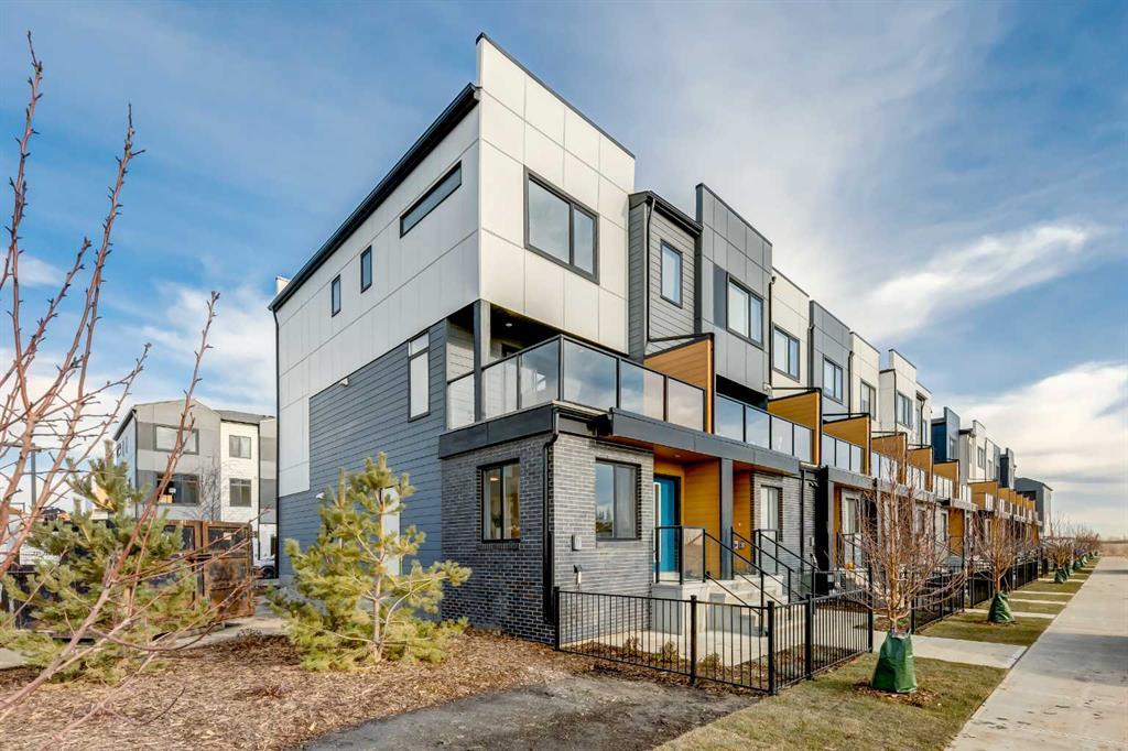 Welcome Home to East Hills Crossing! This BRAND NEW, 3 bedroom, 2.5 bath END UNIT Townhome is a MUST SEE. Walking in you are greeted with a Den/Office area perfect for those who work from home, or easily convert it into a 4th bedroom if that suits your needs. Up the stairs the main level is FLOODED with natural light. The kitchen is modern and timeless, with white quartz countertops, stainless steel appliances, and ample storage with a built in pantry. The living room is sprawling, with an additional nook for reading, kids play area, or a good old fashioned bar cart. Being a corner unit, you have an additional window in the dining area with picture perfect views of the Rocky Mountains! Your SOUTH FACING balcony is HUGE, allowing for tons of sunlight, and has a gas line for your BBQ. A half bath tucked away on this floor completes this level. Up the stairs, you are greeted with 3 GREAT sized bedrooms, 2 Full Bathrooms, and Laundry. There is a 4 piece bathroom with a tub closely located to the 2 bedrooms, and the Primary Suite is large enough for a king size bed + side tables, with a 3-piece en-suite with a glass shower. Notice the additional windows on this level as well, another luxury of being an end unit, and only have neighbours on one side. The DOUBLE CAR Garage is a side by side layout, conveniently park two vehicles inside, with a full driveway that can fit two additional vehicles, and ample street parking out front. This location is absolutely perfect! There is a playground and basketball court in the complex grounds, and you are right across the street from East Hills Shopping Center with 68+ retailers including Costco, shopping, restaurants, medical, and more! Being within 1-2 minutes of Stoney Trail, access citywide is incredibly convenient. 20 Mins to Downtown Calgary, 20 Minutes to the Airport! Don't wait to see this one, Book your Private Showing Today!