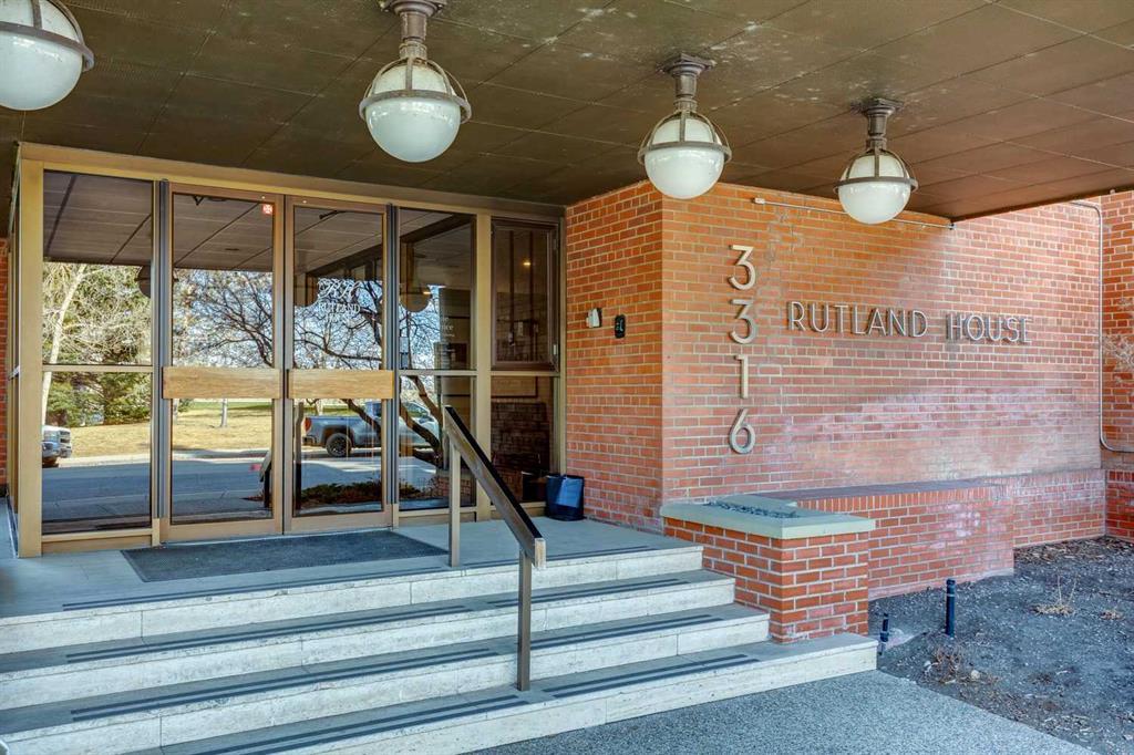 This sunny, bright, two bedroom unit in Rutland House faces south and has a view of the outdoor pool and green space behind the complex. A large foyer with hardwood floors greets you as you step inside. The open concept living room and dining area are bathed in sunshine and provide ample space for entertaining friends. Enjoy views of mature trees from the forty-two foot long balcony. The efficient kitchen could easily be updated to reflect your own personal style. Hardwood continues down the hallway into the two well-proportioned bedrooms. There are multiple closets for all your storage needs, an extra personal storage locker and an assigned parking stall. This mid-century modern building was designed by architect Peter Caspari in 1955 to be Calgary’s first premier high-rise. Design lovers will appreciate the archetypal International-style and visible position atop the Elbow River Escarpment. The proximity of Macleod Trail, the Stampede grounds and Downtown Core make it an ideal location. Stroll the pathways along the river or walk to the restaurants, cafés and boutiques of the Mission district. This is an ideal spot to enjoy all the city has to offer!