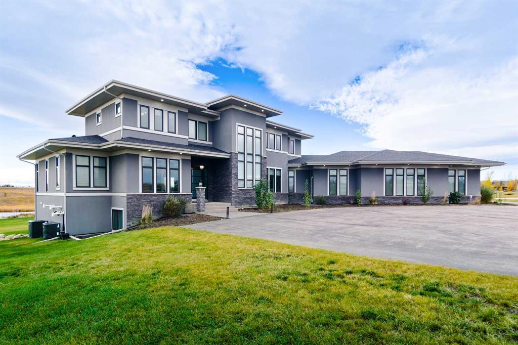 This remarkable 'Glass House' boasts an ingenious design that seamlessly balances privacy with an abundance of natural light and breathtaking panorama mountain view through its expansive floor-to-ceiling windows. The home's open concept layout on the main floor offers a perfect blend of family living and entertainment, featuring spacious, thoughtfully designed rooms accentuated by dark wide-plank hardwood floors, glass feature walls, elegant lighting, and a clean and crisp color palette. The great room features a minimalist fireplace, flanked by built-in cabinets and open shelving, while the gourmet kitchen serves as the heart of the home with its sleek white cabinetry, central island, and high-end Jennaire appliances. The adjacent breakfast area provides ample daylight and leads to a spacious deck. A stunning glass-encased staircase welcomes you at the entrance, and the main floor further includes a private office, mudroom, and a 'nanny suite.' Upstairs, the master suite boasts captivating mountain views, a two-sided fireplace, and a spa-like ensuite. Two additional bedrooms, each with an ensuite, and a laundry room complete this level. The walkout lower level offers the ultimate in entertainment with a custom bar, media area, games table, and access to the covered patio and a vast 2.03-acre property that borders protected parkland. The basement also features two guest suites and a workout room. The home includes a heated, insulated 4-car garage, and it provides a tranquil retreat just minutes away from Calgary's amenities. This modern masterpiece truly redefines the concept of home.