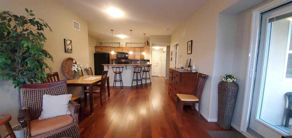 For additional information, please click on Brochure button below. Vacant! Downsize your space and upscale your living with affordable living. The Aviemore a 55+ sought after community with maintenance free resort style living. This outstanding non-smoking, 2 bedroom, 2 full bathroom main floor condo boasts a bright open floor plan with 9 ft ceilings that feels like a single family home! You have 2 ways to access your condo: via multiple entrances to the complex or directly via the condo's patio which has gas BBQ hook up and a green space that lets you (& your pet) come and go as you please. Included is a titled single secure underground heated parking space with storage and is steps away from street parking. This unit has central heat and air conditioning, maple cabinetry throughout, hardwood laminate floors, all black energy star appliances, raised eating bar. Master bedroom has walk-through mirrored closets entering into 5-pc ensuite. Second bedroom is besides a 4-pc bath & close by is laundry/storage area with stacked washer/dryer. The condo fees include: central heat and air conditioning, water/sewer, landscaping and snow removal, professional management, exterior building maintenance, insurance (except for contents), gym with steam room, games room, car wash,wood workshop, massive banquet room, library, outdoor BBQ area. There is also a full calendar of events to mingle and get to know new friends in this amazing complex! McKenzie Towne is a foot-friendly design with a small town feel and a vibrant retail district. You can walk to the grocery stores, pharmacy, restaurants, pubs, cafes, community center, parks, ponds and transit. It is a stones throw away from Fish Creek Park, several golf courses, South Health Campus Hospital and all the retail and medical services at 130th Ave. Complex has 2 guest suites for out-of-town visitors. Vacant! Ready to make it your home!