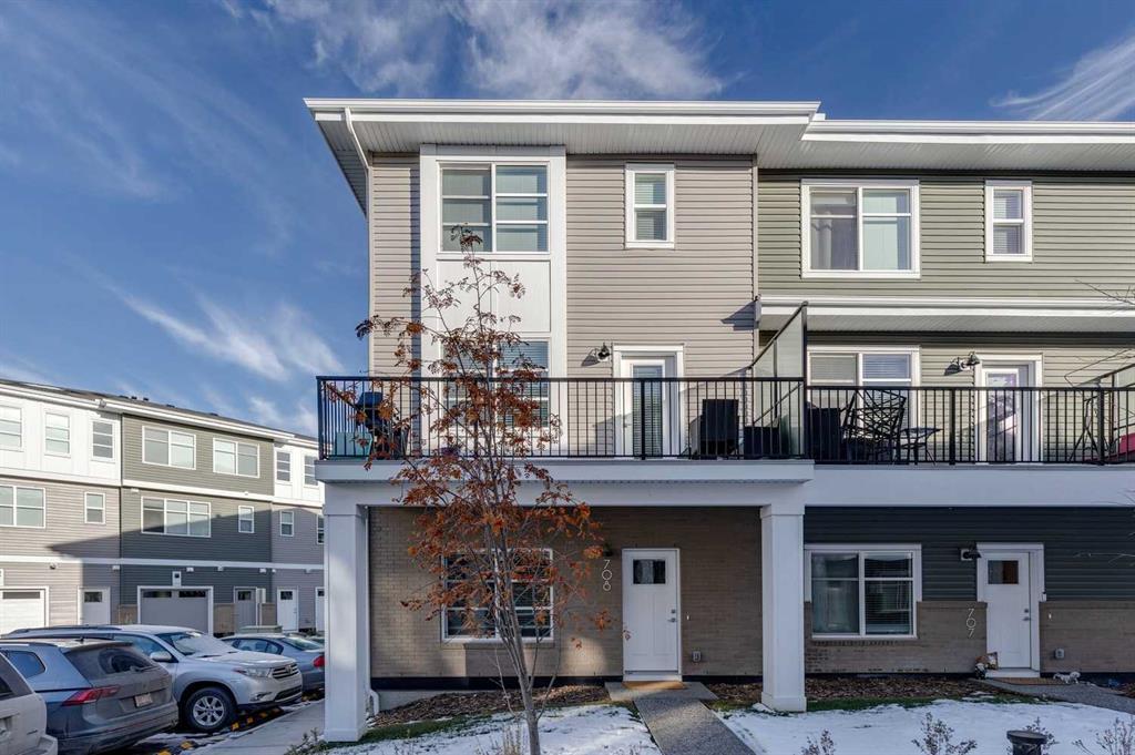 Beautiful like new townhome in the sought after community Cornerstone, with easy access to Stoney Trail, Schools, New Commercial District, Scenic Pathways and steps to a plethora of amenities. This home features 4 bedrooms and 2.5 bathrooms with an attached double garage. As you enter the home, you're greeted by a bedroom/office on the main floor and large double garage that makes those morning winter drives a lot more enjoyable. The bright and spacious second floor features an open concept layout, large windows, kitchen with large island, upgraded granite countertops, stainless steel appliances, a spacious dining and living area, a 2 piece bathroom and massive west facing balcony that collects all of the evening sun. The third floor is host to the primary bedroom with 4 piece ensuite & walk-in closet; 2 additional bedrooms; a 4 piece bath and laundry. This complex has ample visitor parking, street parking, and a courtyard. This is a MUST SEE!!