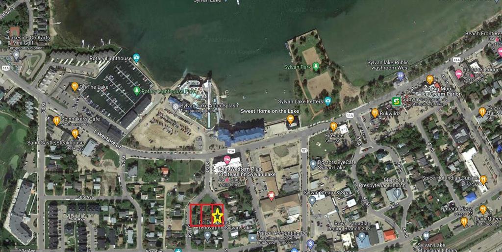 DEVELOPERS DREAM! Three oversized lots available a block from the beach with 165 feet of total frontage and 130 feet deep. Zoned W-DC with multiple development options. There are plans for a 4-6 story commercial/multifamily building with underground parking to consider, or build a row of 7 townhomes with detached garages and roof top patios to enjoy that view. Or bring your own plans with your vision in mind. Amazing Air BnB potential. The location is fantastic only one block from the redeveloped Marina Park and Lighthouse and steps to restaurants, shopping, the main beach, water park, golfing, schools, and so much more that Sylvan has to offer! Amazing views of the lake and the beautiful Sylvan Lake sunsets. Great access for swimming, boating, and enjoying the lake. Tenants are currently renting out 5111 & 5107 50B Ave until you are ready to build. The investment potential is extraordinary in this year round lake community. Build and sell, keep in your portfolio with monthly renters, or provide short term rentals...there are so many choices! This property must be purchased in conjunction with MLS A2090552 and A2090544.