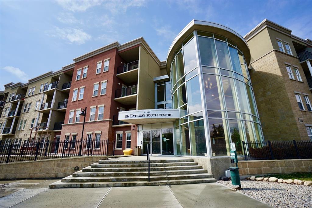 The Gateway Southcentre is a CONCRETE building with a geothermal heat & cooling system (air conditioning included). Condo fees include heat, water and electricity. This building offers many amenities: fully equipped yoga room and gym, guest suites, recreational room. Great location close to Avenida shops, major roadways, LRT and Southcentre Mall. This unit comes with one underground titled parking stall in the heated parkade. The kitchen has granite counter tops, stainless steel appliances with a built-in microwave. Small area just off the kitchen is set up for a den or home office. The living room is bright and offers amazing views. Enjoy your own oversize private balcony that comes with a gas line for your BBQ.