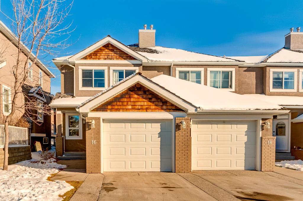 2 storey townhouse in an incredible location within walking distance to Tuscany LRT, schools and shopping. This charming 2 bedroom, 2.5 bathroom corner end unit with single attached garage has been lovingly cared for. Upon entering, the main floor features an open plan with 9' ceilings, corner gas fireplace and eating bar between the kitchen and dining area. The main floor also features an area that can be used as a den/flex room as well as a nice sized mud room and two piece bathroom. Upstairs you will find a bright, sunny bonus room, nice sized master bedroom with ensuite and walk in closet, a second bedroom and four piece bathroom. The basement is unfinished, ready for you develop as you wish. Located in the heart of the charming neighbourhood of Royal Oak, book a showing and make this your next home!