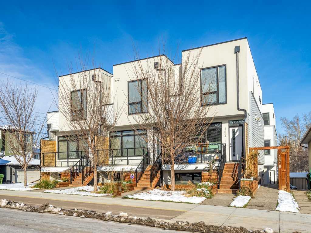Backing onto Confederation Park, this thoughtfully designed home offers 3 levels of living, an attached garage and an open-concept floorplan. This fantastic townhome offers a lower level (entry-level) flex room ideal for a home office, kids' playroom or third bedroom having its own three-piece ensuite and patio door that opens up onto its own private park! The main level boasts an open kitchen perfect for entertaining, cozy living room complete with fireplace and access to a balcony overlooking Confederation Park with the golf course beyond. This sun-filled home has endless upgrades with 9’ ceilings, quartz counters, custom cabinetry, wide plank floors, stainless steel appliances, high-end lighting, designer paints, and a formal dining space. The upper level is complete with two large bedrooms both featuring EN-SUITE baths (heated master floors), walk-in closets, and a spacious laundry room. This location is steps to transit, easy access to the inner city, wonderful parks, SAIT, and countless amenities. Call your favourite Realtor to book a showing!