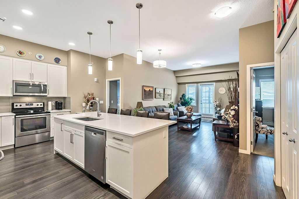 A wonderful 2 bed 2 bathroom TOP FLOOR condo in the desirable Sandgate of MAHOGANY! Short walk to all amenities, parks, & playgrounds. This beautifully designed building offers access to a GYM. LIBRARY plus TITLED UNDERGROUND PARKING with spacious storage locker. This Well-maintained home offers LUXURY VINYL TILE in the main living area with tile in the bathrooms and carpet in the bedrooms. Well designed with the bedrooms separated on either end of the unit, each with their own bathroom. The fantastic kitchen offers full height white cabinetry with a HUGE ISLAND and STAINLESS STEEL appliances. QUARTZ COUNTERTOPS in the kitchen and both bathrooms! Spacious great room with big windows! Two great sized bedrooms. The primary offers a walk-in closet with a 3-pce ensuite. The second bedroom is adjacent to the main 4-pce bath with soaker tub/shower combo. Fantastic laundry/storage room in suite. Condo fees include heat & water. Gas hookup on balcony. Book your private showing today!!